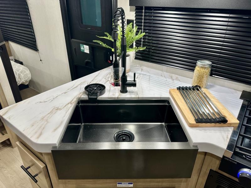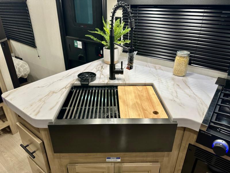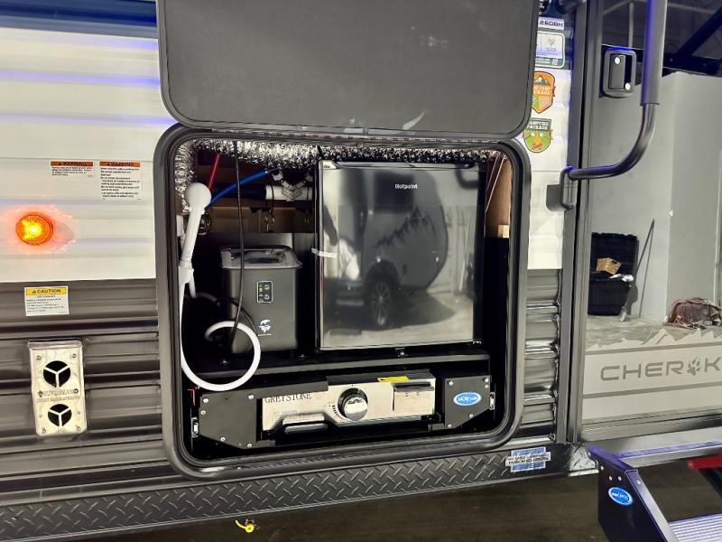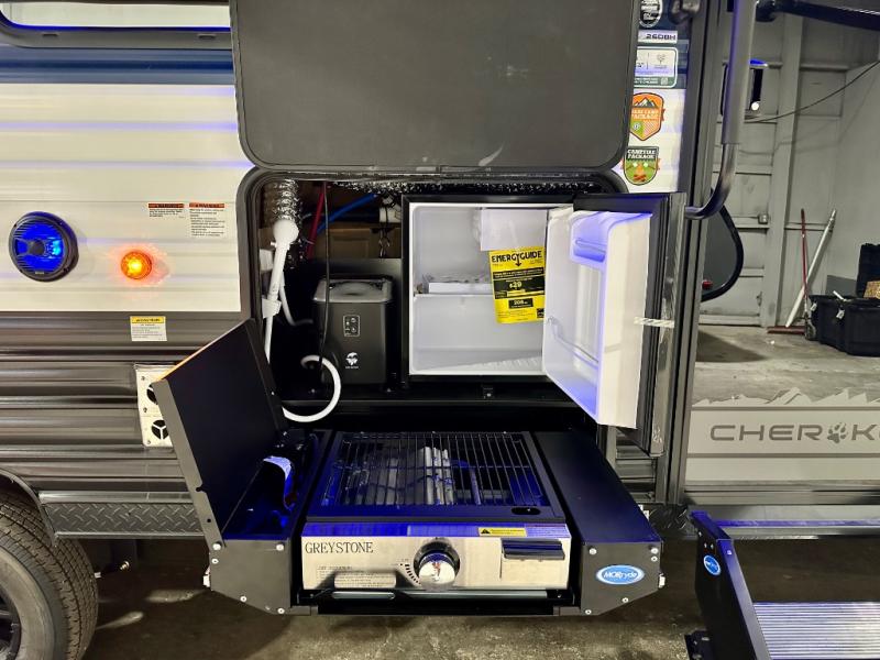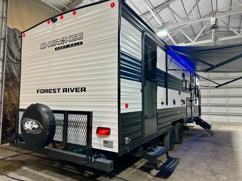 Whether it's a journey that will take you to new locations or a tried-and-true getaway to that favorite and memorable destination, the Forest River Cherokee Grey Wolf travel trailers and toy haulers are going to make the trip worth it every single time! You can travel in confidence with the premium wheel package, seamless roofing membrane with heat reflectivity, Power Gear frame technology with space-saver rail design, and Cherokee back-up camera system. The Cherokee Grey Wolf's interior is highly attractive with its stainless steel kitchen suite package and premium bedding ensemble and comforter. You will also find a black waste tank flush-out kit, an outside shower with hot and cold water, an armored underbelly tank enclosure, and an RV grill quick connect.
