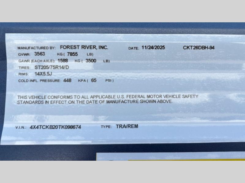 New 2026 Forest River RV Cherokee Grey Wolf 26DBH Travel Trailer