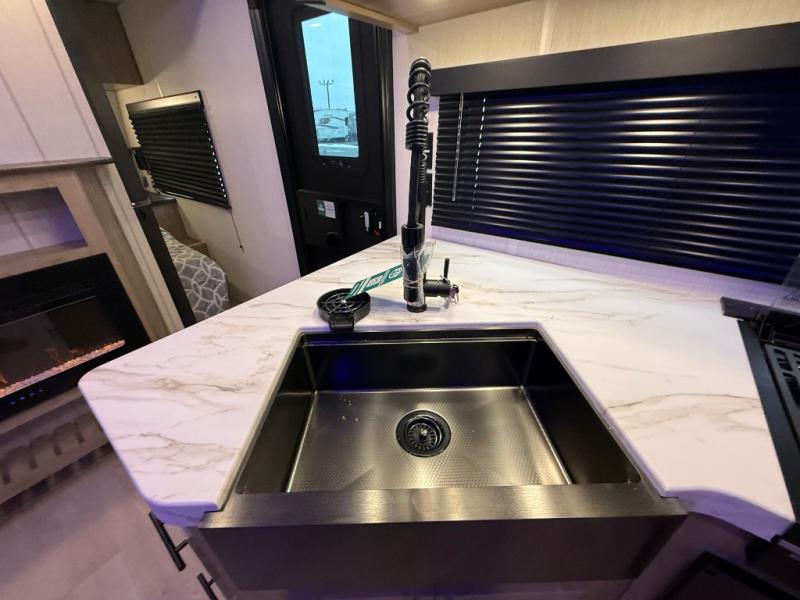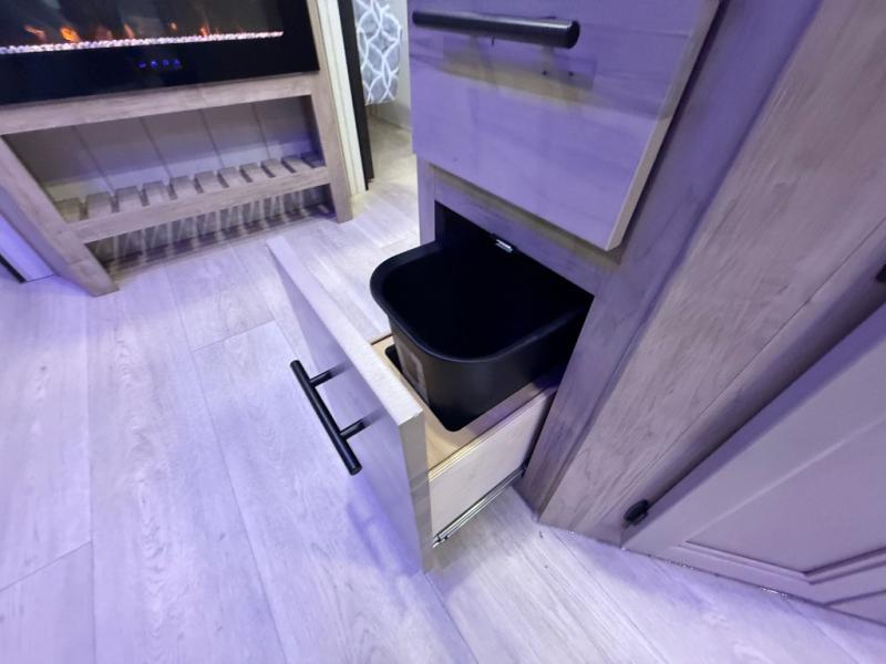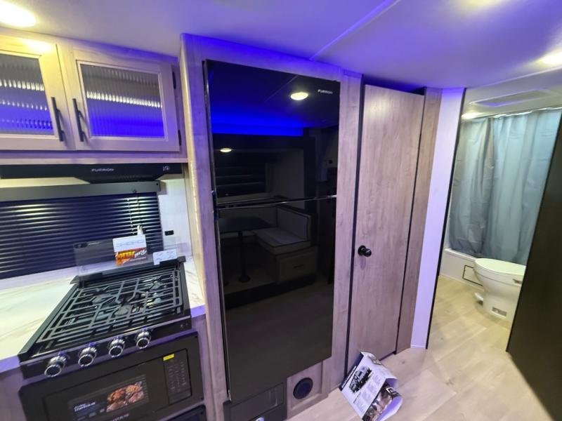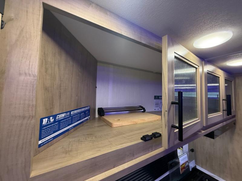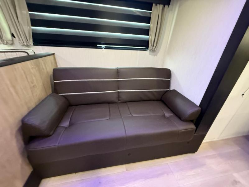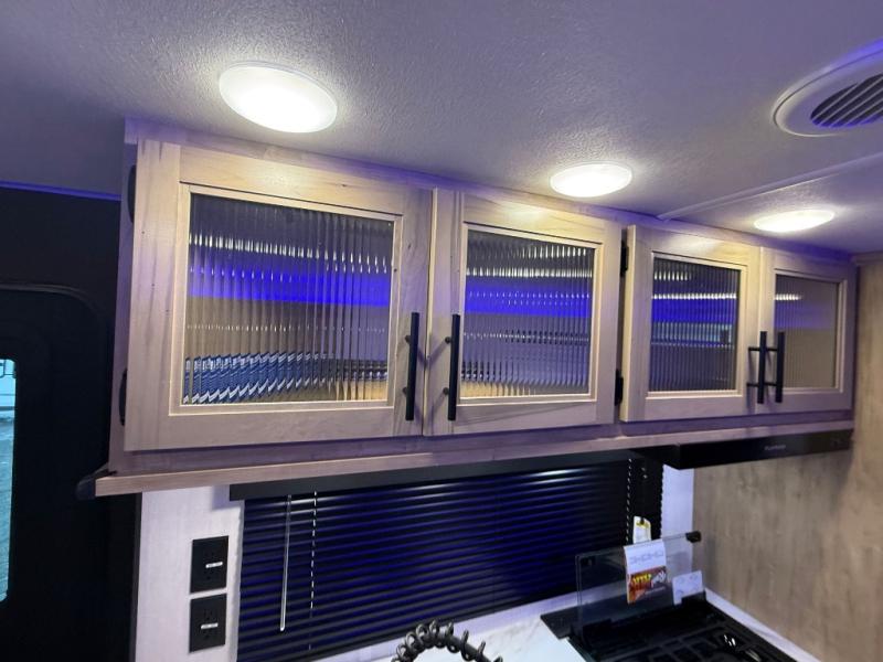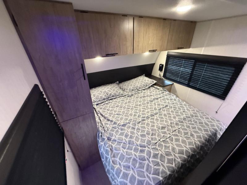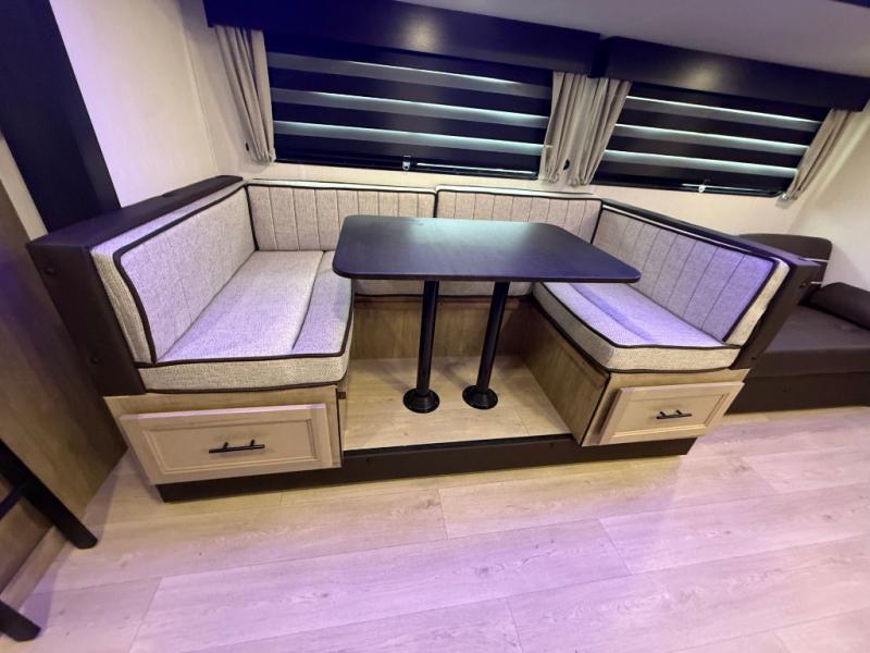 Come on inside this Cherokee Grey Wolf travel trailer and experience the convenience of a smooth flow of traffic in and out with two entry doors. The rear door leads into a full bath which is great for accessibility. Once inside, you will notice the large U-shaped dinette and the sofa which sit on the slide and create a spacious footprint for moving about, as well as great places to play games and socialize with your friends and family. A walk-in pantry provides plenty of storage allowing you to stock up on your favorite snacks and dry goods for your family adventure. At night, there is sleeping space for everyone between the double-size bunks and the RV king bed, plus the furniture.
