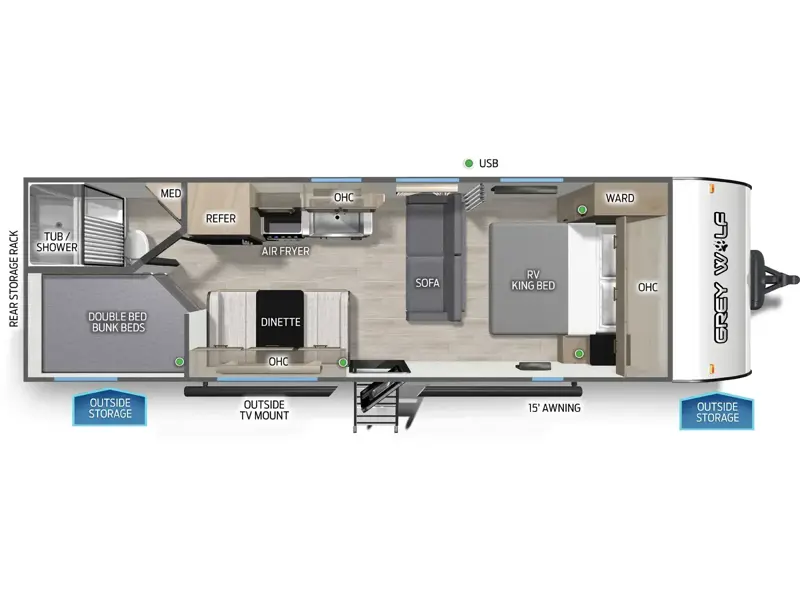 The Grey Wolf by Cherokee is engineered with impeccable quality, distinctive features, superior comfort and remarkable affordability. Grey Wolf offers our customers a chance to escape the ordinary and relax, to enjoy family and friends and to see nature in all its beauty and wonder. These special life moments are the reasons we take such pride in all we do.