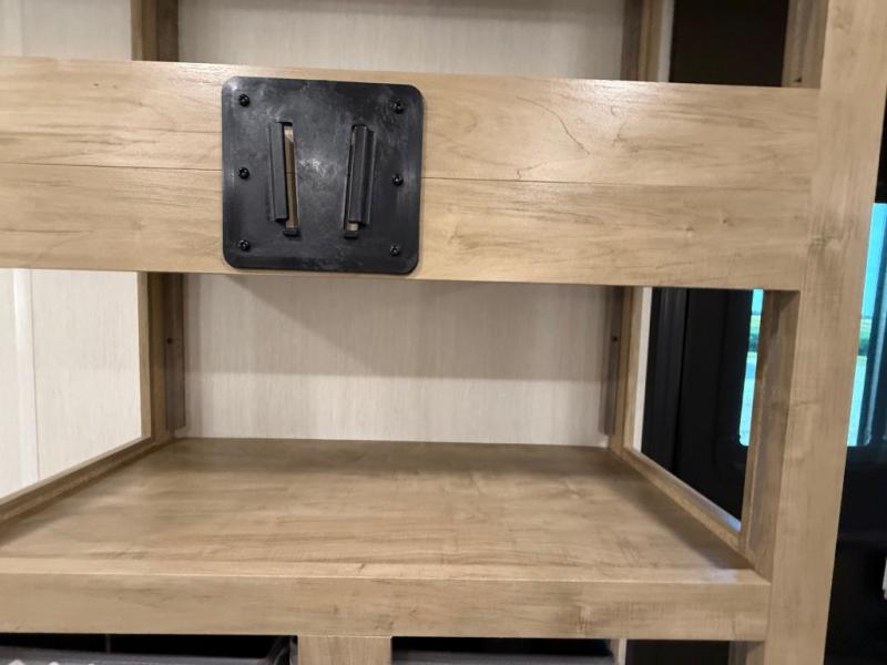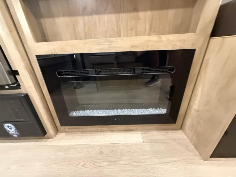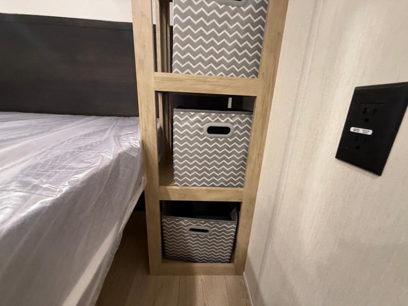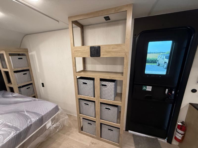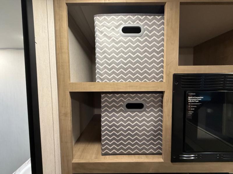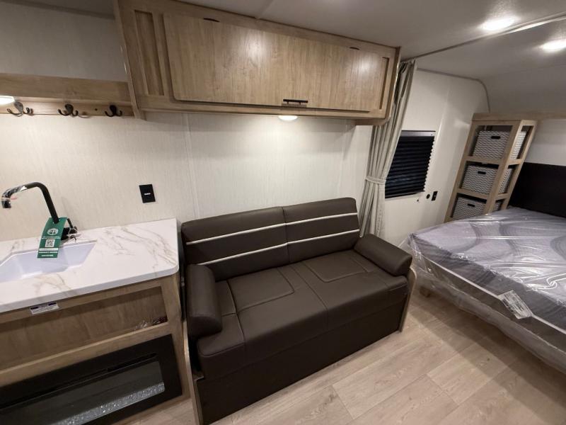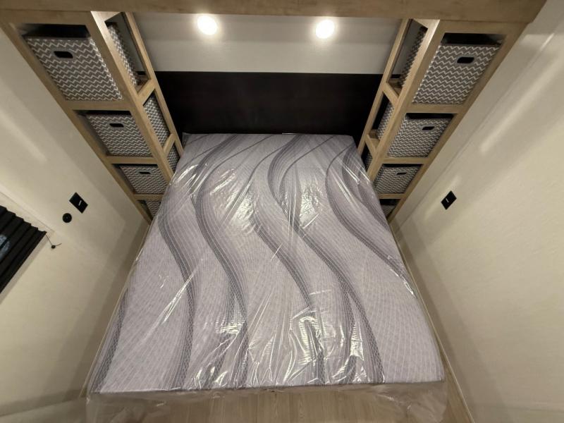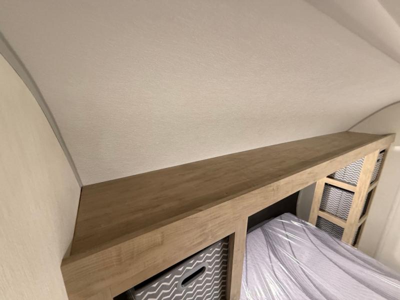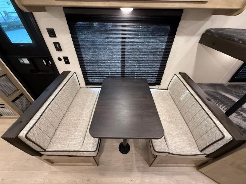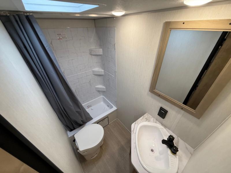 Enjoy family adventures in this bunk model which features sleeping for eight to ten depending on size with a queen bed up front, double-size bunks in the rear curbside corner, and you could even convert the booth dinette and sofa to sleep more. Inside, you will find ample storage with overhead cabinets and a large shelf above the queen bed, plus more shelves next to the entry door, as well as a pantry and storage on either side of the bed. You will appreciate the full bath with tub/shower, toilet, and sink so you can skip the campground facilities. On the outside, you will also find a 12' awning for added outdoor living, and outside storage for your camping gear, plus more!