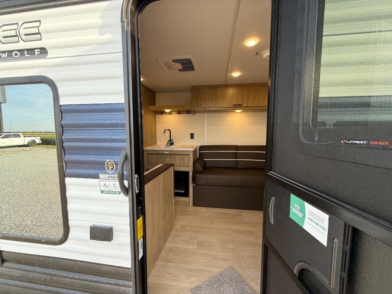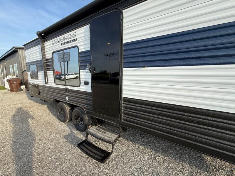 Whether it's a journey that will take you to new locations or a tried-and-true getaway to that favorite and memorable destination, the Forest River Cherokee Grey Wolf travel trailers and toy haulers are going to make the trip worth it every single time! You can travel in confidence with the premium wheel package, seamless roofing membrane with heat reflectivity, Power Gear frame technology with space-saver rail design, and Cherokee back-up camera system. The Cherokee Grey Wolf's interior is highly attractive with its stainless steel kitchen suite package and premium bedding ensemble and comforter. You will also find a black waste tank flush-out kit, an outside shower with hot and cold water, an armored underbelly tank enclosure, and an RV grill quick connect.