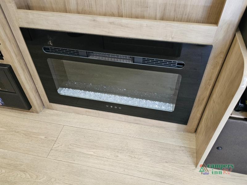 Comfortable Living: Features a 15,000 BTU air conditioner, fireplace, and upgraded sofa with bolster armrests.