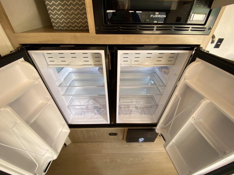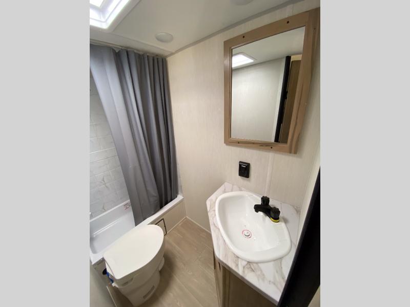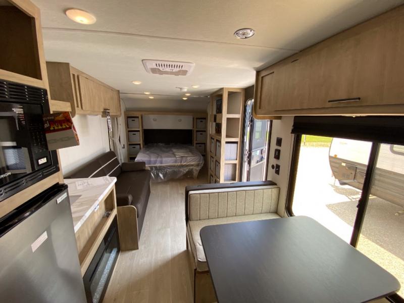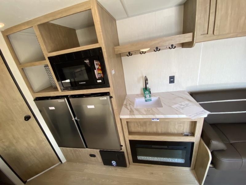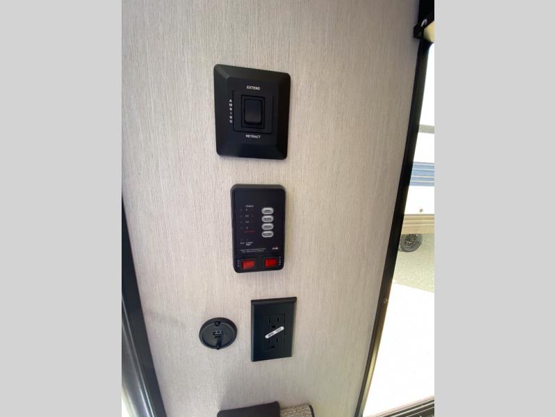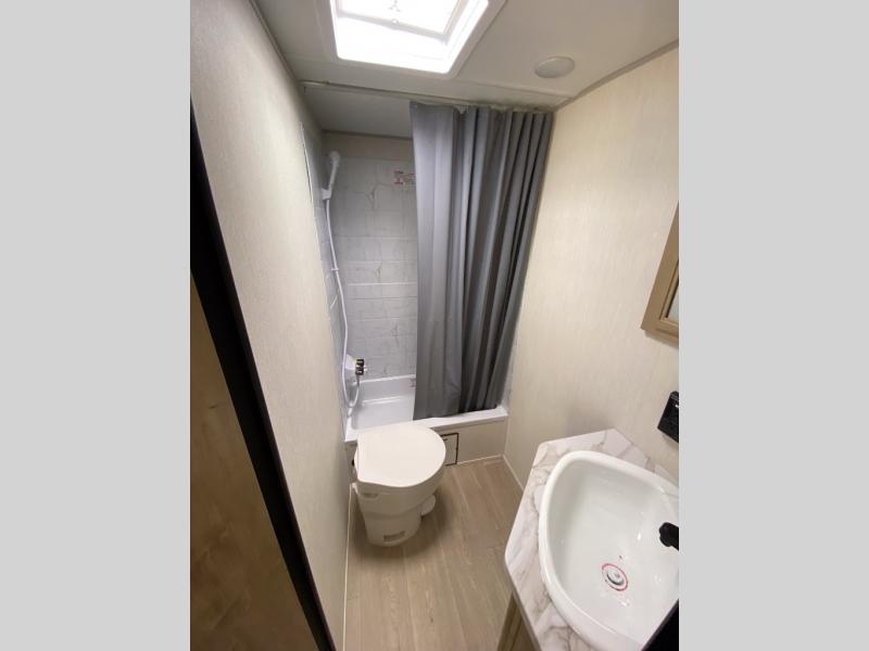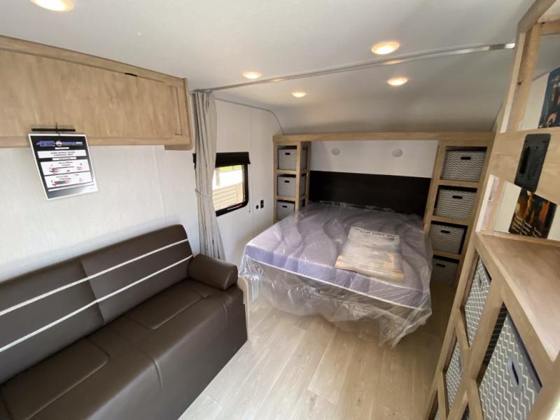 Enjoy family adventures in this bunk model which features sleeping for eight to ten depending on size with a queen bed up front, double-size bunks in the rear curbside corner, and you could even convert the booth dinette and sofa to sleep more. Inside, you will find ample storage with overhead cabinets and a large shelf above the queen bed, plus more shelves next to the entry door, as well as a pantry and storage on either side of the bed. You will appreciate the full bath with tub/shower, toilet, and sink so you can skip the campground facilities. On the outside, you will also find a 12' awning for added outdoor living, and outside storage for your camping gear, plus more!