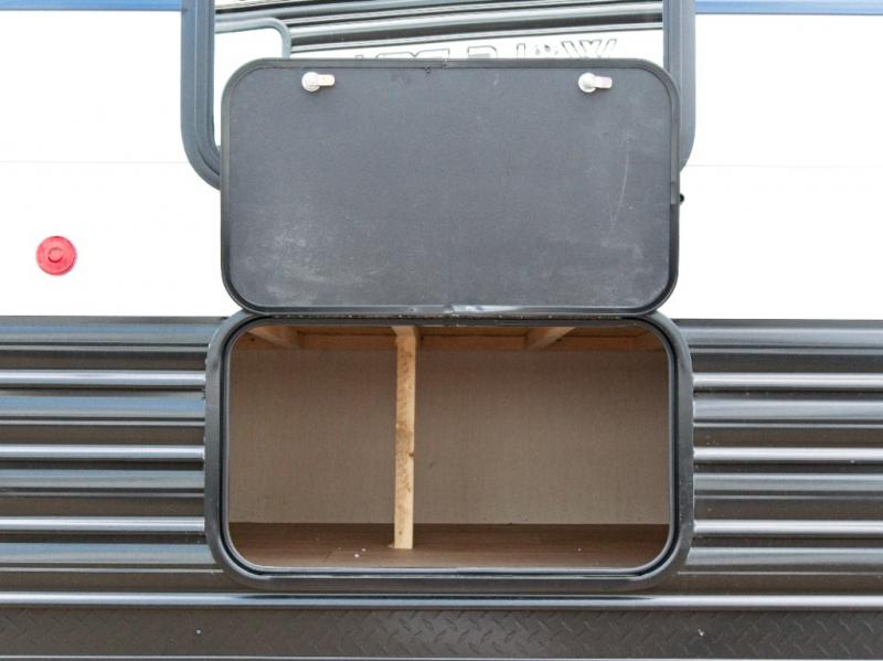 Relax under the 12' power awning or access gear from the exterior compartments. The outside shower (hot and cold), black tank flush, and RV grill quick connect add convenience to your campsite experience.