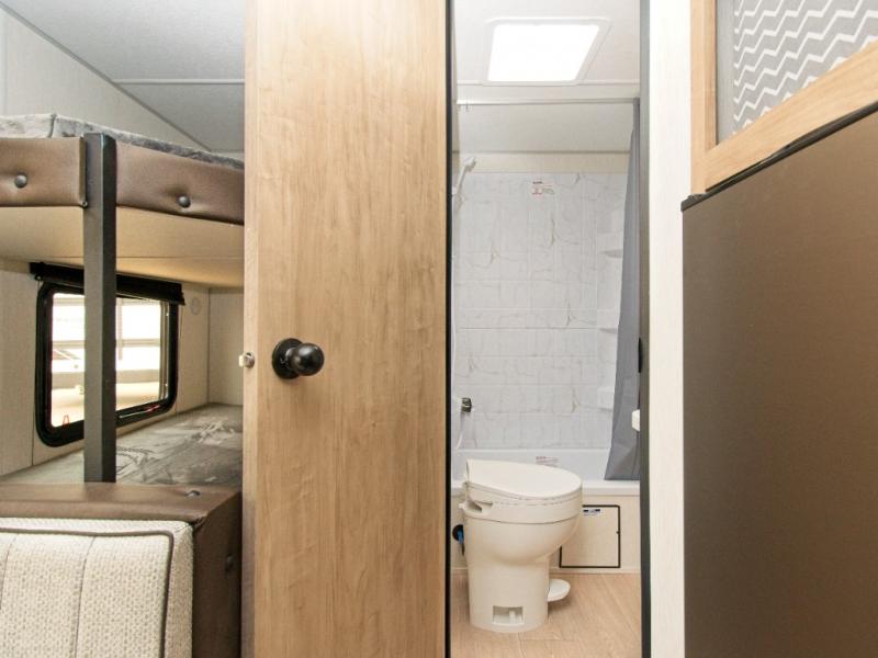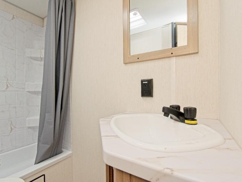 Skip the campground restroom thanks to the full bath setup, complete with a tub/shower combo, toilet, and sink. It's comfort and cleanliness on wheels!