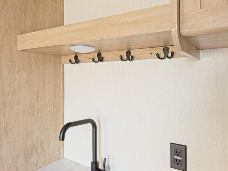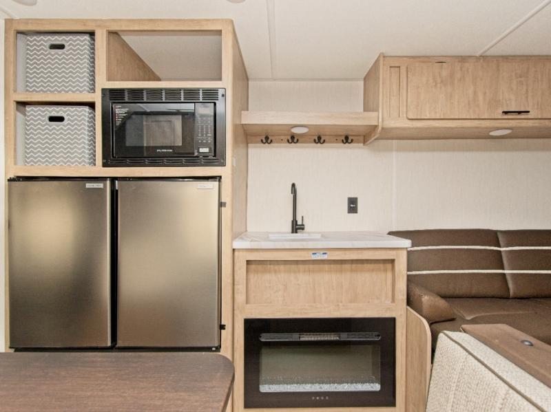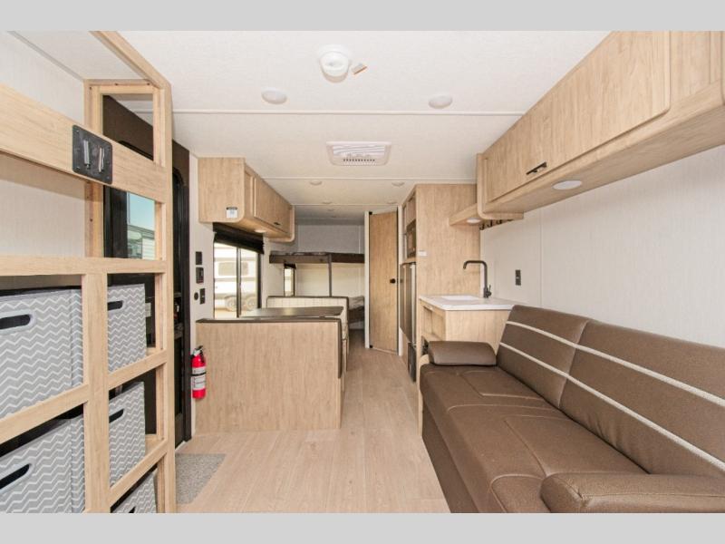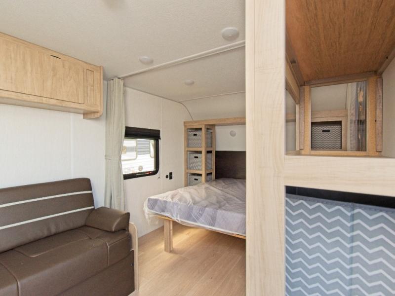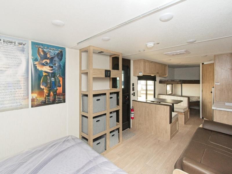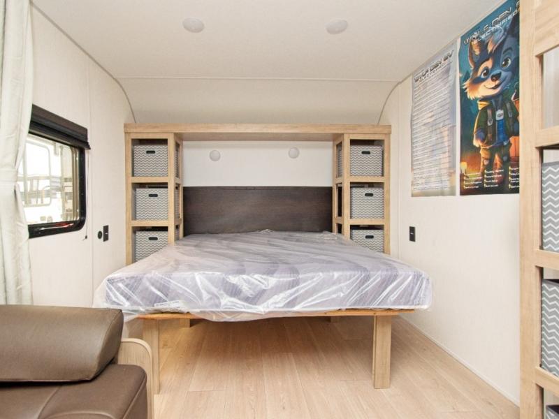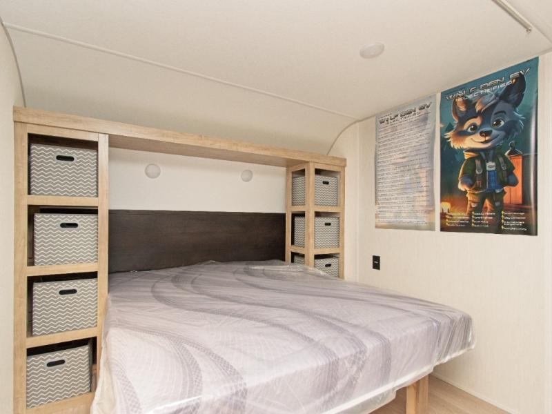 Keep clutter at bay with overhead cabinets, a large shelf above the queen bed, dual bedside storage compartments, pantry space, and entryway shelving. Everything you need is within reach, whether you're prepping meals or packing for the next outing.