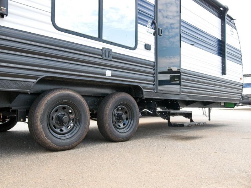 Ride with confidence using premium wheels, an armored underbelly enclosure, and Power Gear frame technology with space-saving rail design. The seamless roofing membrane reflects heat and helps extend your camping season.