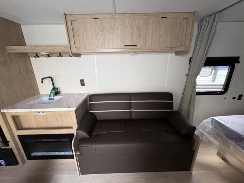 Spacious Sleeping Arrangements: The 26EV comfortably sleeps up to 8-10 people, making it ideal for families or groups. It features a front queen bed, double-size rear corner bunks, and convertible sleeping spaces with the booth dinette and sofa, ensuring everyone has a cozy spot to rest.