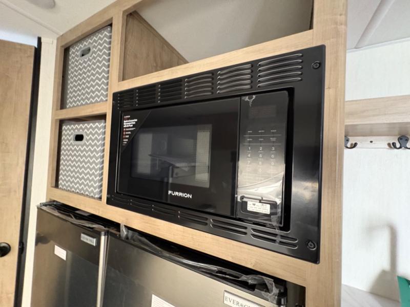 Modern Amenities: The 26EV comes equipped with a 12' power awning with LED lighting, a high-efficiency 10 cu ft 12V refrigerator, and a tankless water heater, ensuring comfort and convenience during your travels.
