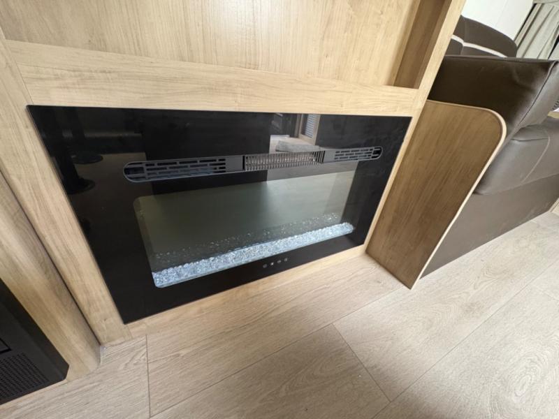Modern Amenities: The 26EV comes equipped with a 12' power awning with LED lighting, a high-efficiency 10 cu ft 12V refrigerator, and a tankless water heater, ensuring comfort and convenience during your travels.