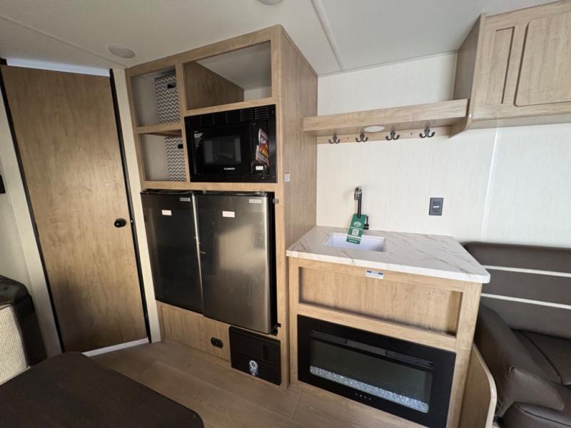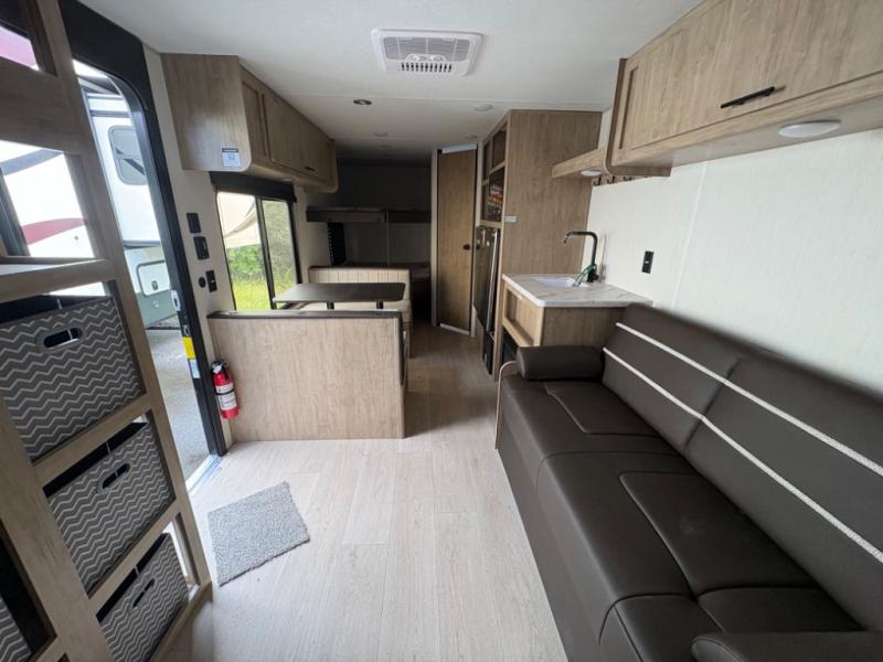 Spacious Sleeping Arrangements: The 26EV comfortably sleeps up to 8-10 people, making it ideal for families or groups. It features a front queen bed, double-size rear corner bunks, and convertible sleeping spaces with the booth dinette and sofa, ensuring everyone has a cozy spot to rest.