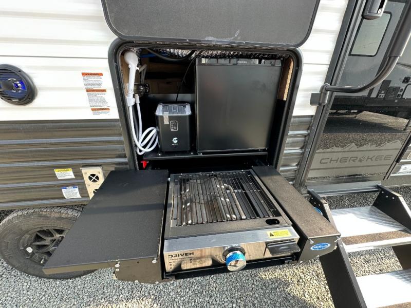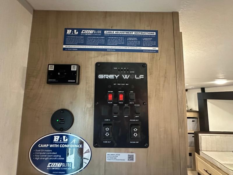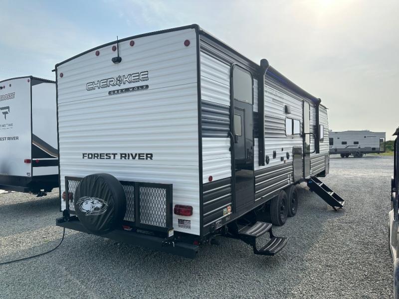 Whether it's a journey that will take you to new locations or a tried-and-true getaway to that favorite and memorable destination, the Forest River Cherokee Grey Wolf travel trailers and toy haulers are going to make the trip worth it every single time! You can travel in confidence with the premium wheel package, seamless roofing membrane with heat reflectivity, Power Gear frame technology with space-saver rail design, and Cherokee back-up camera system. The Cherokee Grey Wolf's interior is highly attractive with its stainless steel kitchen suite package and premium bedding ensemble and comforter. You will also find a black waste tank flush-out kit, an outside shower with hot and cold water, an armored underbelly tank enclosure, and an RV grill quick connect.