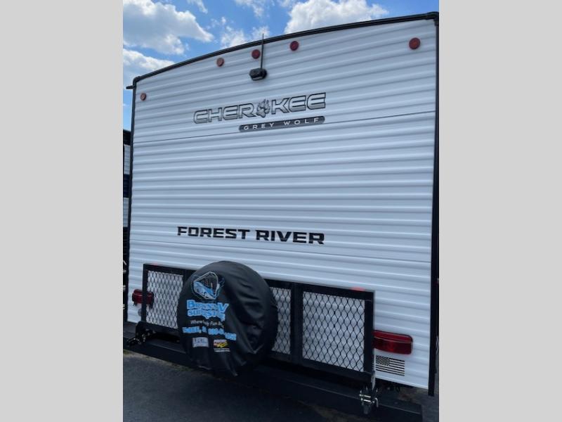 Whether it's a journey that will take you to new locations or a tried-and-true getaway to that favorite and memorable destination, the Forest River Cherokee Grey Wolf travel trailers and toy haulers are going to make the trip worth it every single time! You can travel in confidence with the premium wheel package, seamless roofing membrane with heat reflectivity, Power Gear frame technology with space-saver rail design, and Cherokee back-up camera system. The Cherokee Grey Wolf's interior is highly attractive with its stainless steel kitchen suite package and premium bedding ensemble and comforter. You will also find a black waste tank flush-out kit, an outside shower with hot and cold water, an armored underbelly tank enclosure, and an RV grill quick connect.