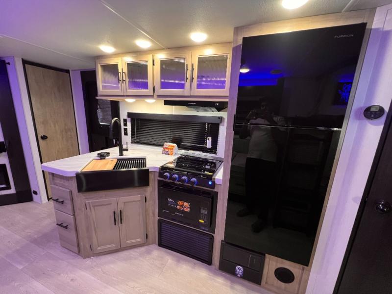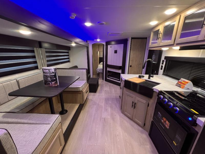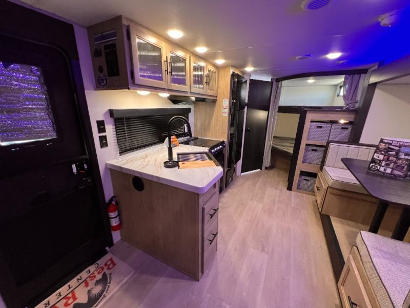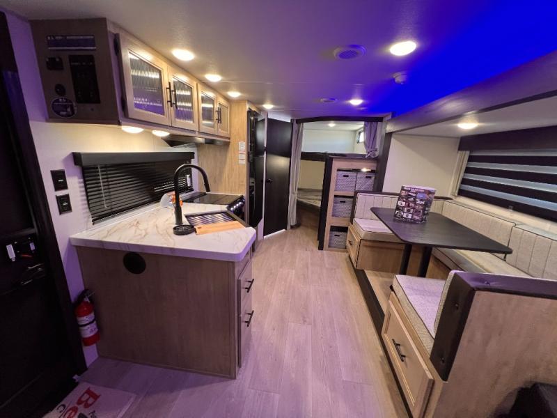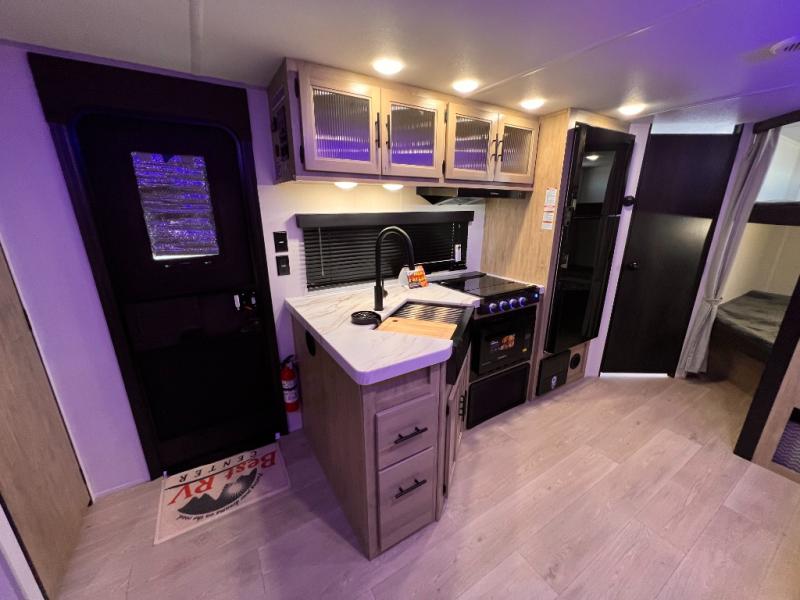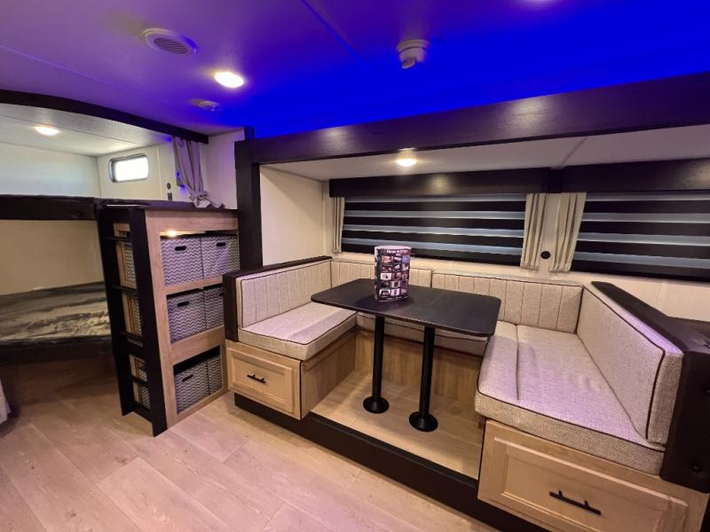 DOUBLE BUNK BEDS / OUTDOOR KITCHEN/ KING BED / FIRE PLACE /TWO FULL SIZE BUNKS / TWO ENTRY DOORS / ALL POWER JACKS / 200 W SOLAR