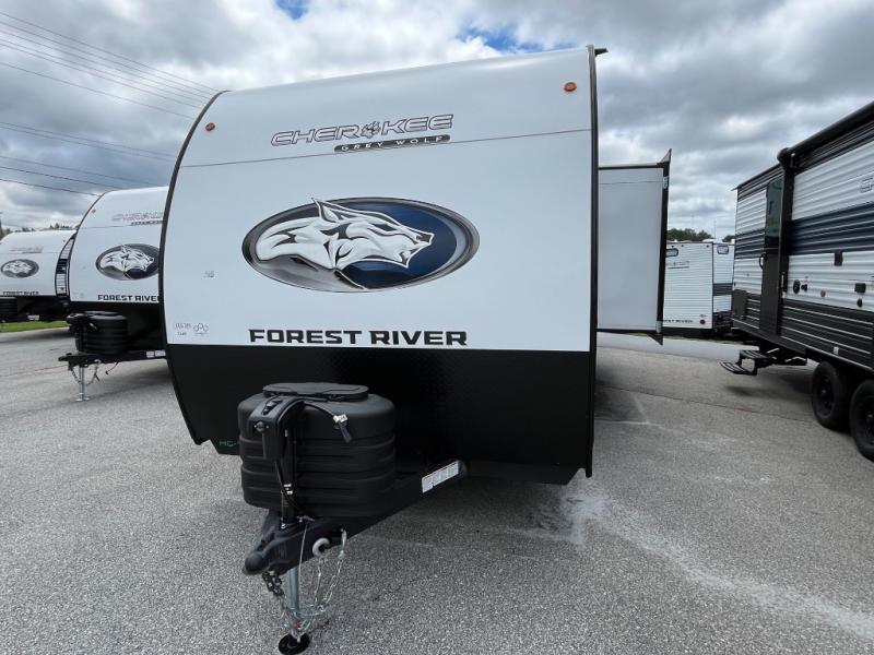 Whether it's a journey that will take you to new locations or a tried-and-true getaway to that favorite and memorable destination, the Forest River Cherokee Grey Wolf travel trailers and toy haulers are going to make the trip worth it every single time! You can travel in confidence with the premium wheel package, seamless roofing membrane with heat reflectivity, Power Gear frame technology with space-saver rail design, and Cherokee back-up camera system. The Cherokee Grey Wolf's interior is highly attractive with its stainless steel kitchen suite package and premium bedding ensemble and comforter. You will also find a black waste tank flush-out kit, an outside shower with hot and cold water, an armored underbelly tank enclosure, and an RV grill quick connect.