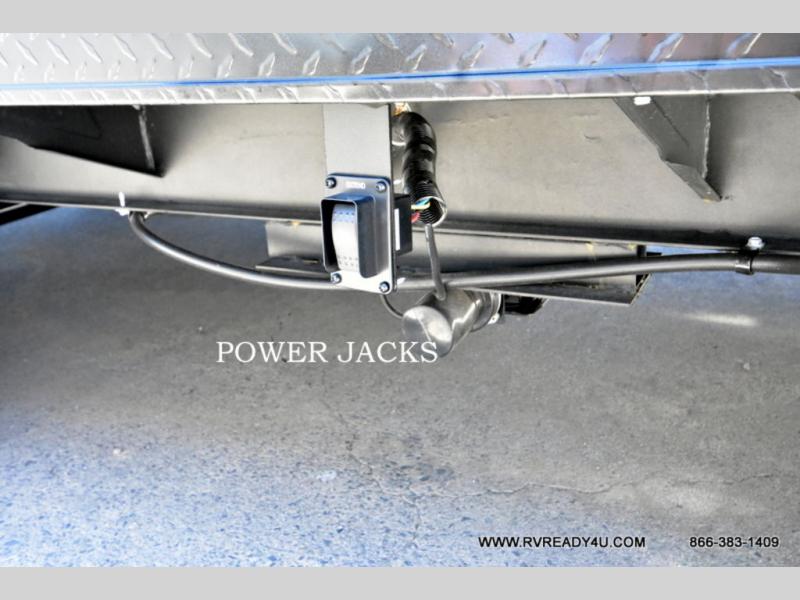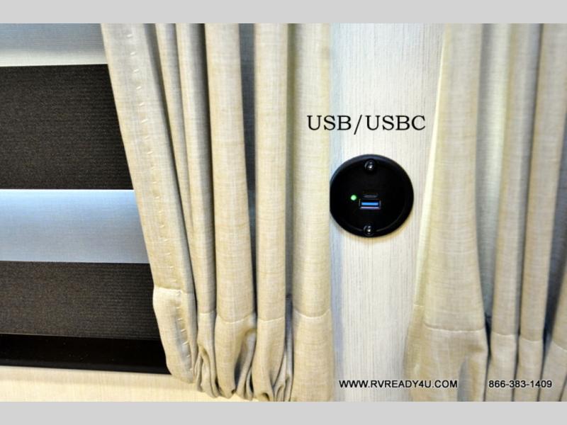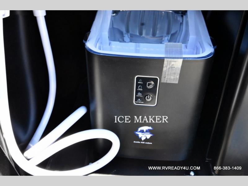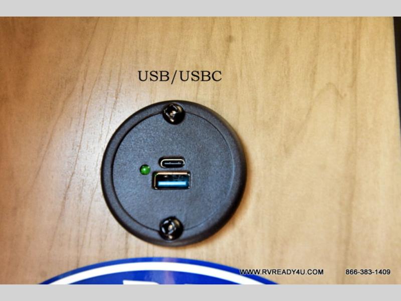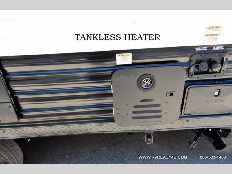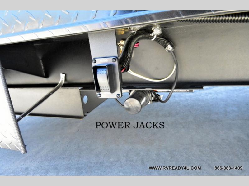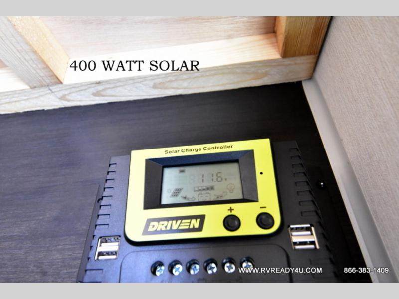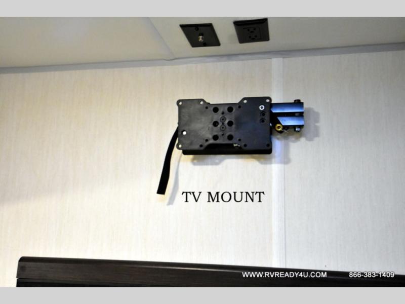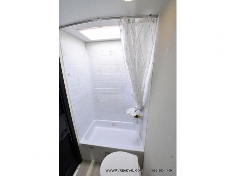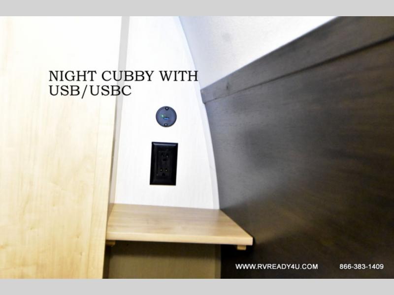 If you've been searching for a travel trailer with a larger sleeping capacity to camp with friends, this is the one! There are double-size bunks in the rear corner, and the full bath with its own exterior entry door is in the other rear corner for easy nighttime use. Up front, an RV king bed in the private bedroom is sure to bring a great night's rest, and you'll find dual bedside wardrobes to keep your clothes picked up off of the floor. In the morning, everyone can meet in the main living room that includes a large slide out, U-shaped dinette, sofa, and a fireplace with a hidden pantry behind it for smart storage solutions. There is also a TV mount here for the option to bring along your television. An outside mini kitchen will allow you to get some fresh air as you make dinner, but there's also a full interior kitchen if the weather isn't cooperating. Additional outdoor features include a rear storage rack, an outside TV mount, and a 9' power awning for some shade!