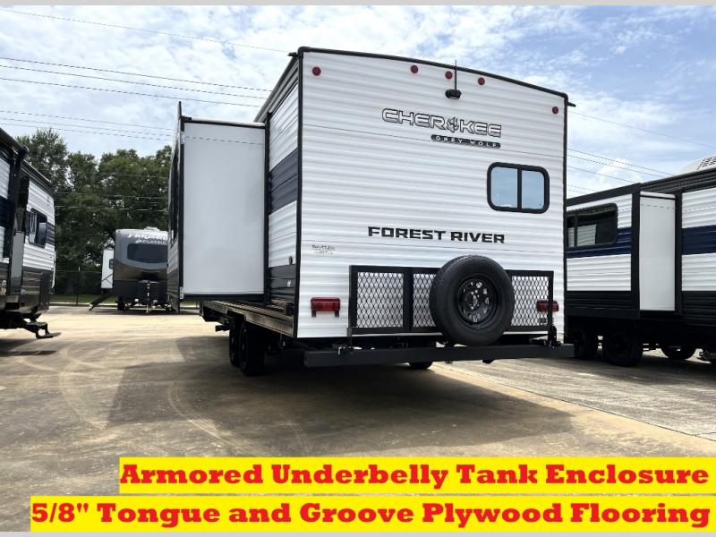 The Cherokee Grey Wolf by Forest River feature distinctive features, at-home comforts, and durable construction materials so you can enjoy your RV for years to come, plus they are outstandingly affordable! You can choose between travel trailers, toy haulers, and even fish houses, depending on the camping style you prefer. You'll find many convenient amenities both inside and outside, along with comfortable seating and sleeping spaces, and plenty of storage for your personal belongings and camp gear!