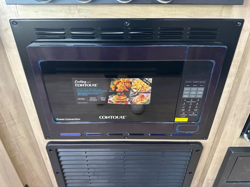 If you've been searching for a travel trailer with a larger sleeping capacity to camp with friends, this is the one! There are double-size bunks in the rear corner, and the full bath with its own exterior entry door is in the other rear corner for easy nighttime use. Up front, an RV king bed in the private bedroom is sure to bring a great night's rest, and you'll find a bedside wardrobe to keep your clothes picked up off of the floor. In the morning, everyone can meet in the main living room that includes a large slide out, U-shaped dinette, sofa, and a fireplace with a hidden pantry behind it for smart storage solutions. An outside kitchen will allow you to get some fresh air as you make dinner, but there's also a full interior kitchen if the weather isn't cooperating. Additional outdoor features include a rear storage rack, an outside TV mount, and a 15' awning for some shade!