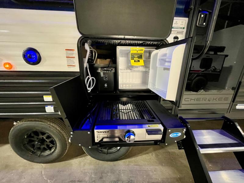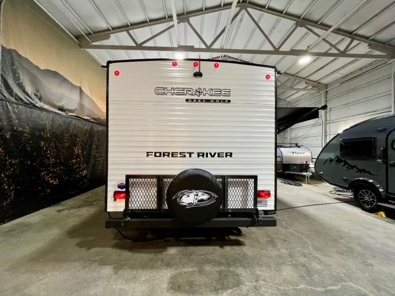 Whether it's a journey that will take you to new locations or a tried-and-true getaway to that favorite and memorable destination, the Forest River Cherokee Grey Wolf travel trailers and toy haulers are going to make the trip worth it every single time! You can travel in confidence with the premium wheel package, seamless roofing membrane with heat reflectivity, Power Gear frame technology with space-saver rail design, and Cherokee back-up camera system. The Cherokee Grey Wolf's interior is highly attractive with its stainless steel kitchen suite package and premium bedding ensemble and comforter. You will also find a black waste tank flush-out kit, an outside shower with hot and cold water, an armored underbelly tank enclosure, and an RV grill quick connect.