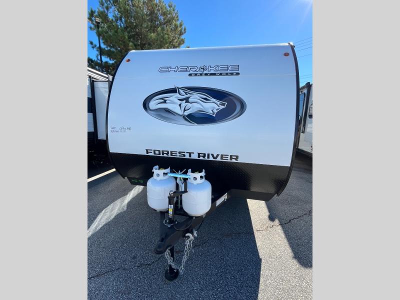 The Cherokee Grey Wolf by Forest River feature distinctive features, at-home comforts, and durable construction materials so you can enjoy your RV for years to come, plus they are outstandingly affordable! You can choose between travel trailers, toy haulers, and even fish houses, depending on the camping style you prefer. You'll find many convenient amenities both inside and outside, along with comfortable seating and sleeping spaces, and plenty of storage for your personal belongings and camp gear!