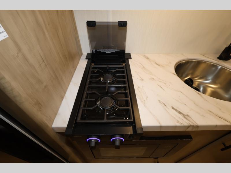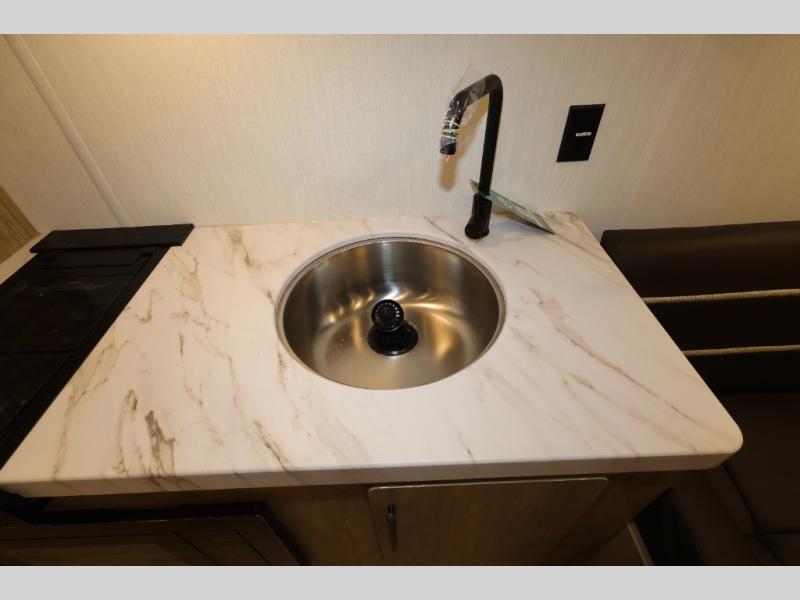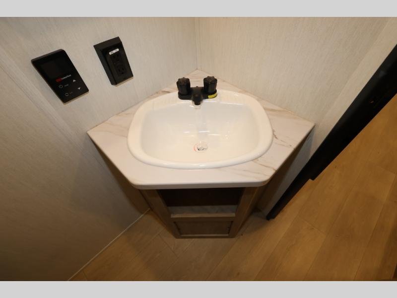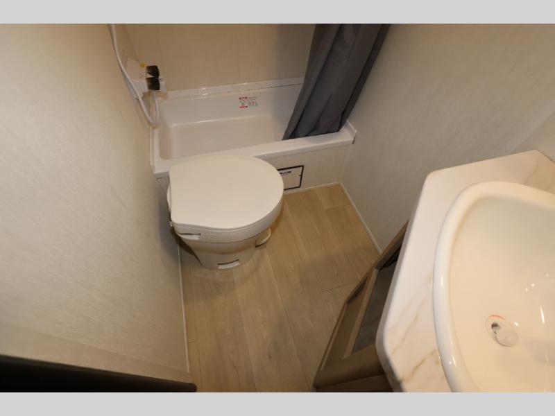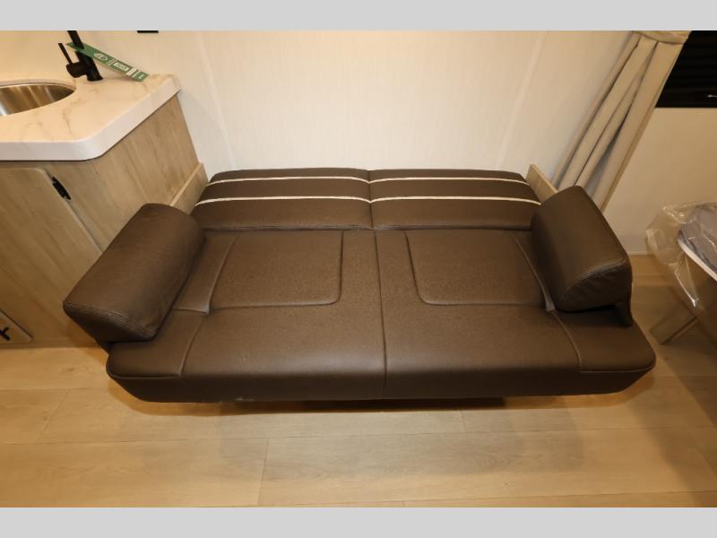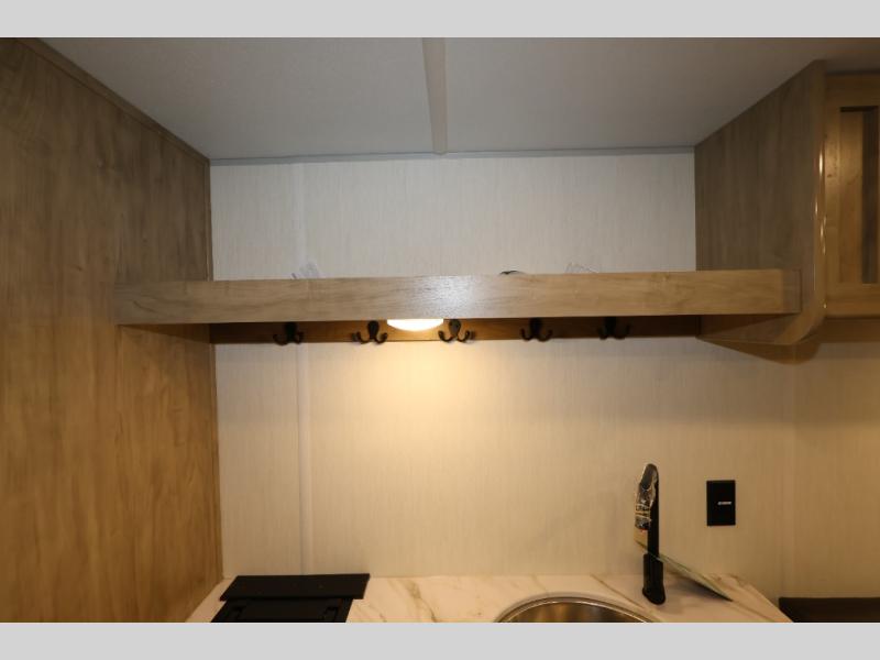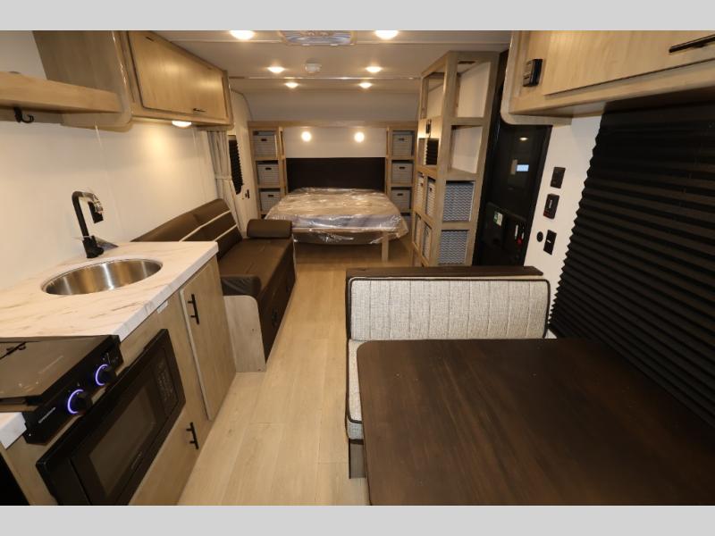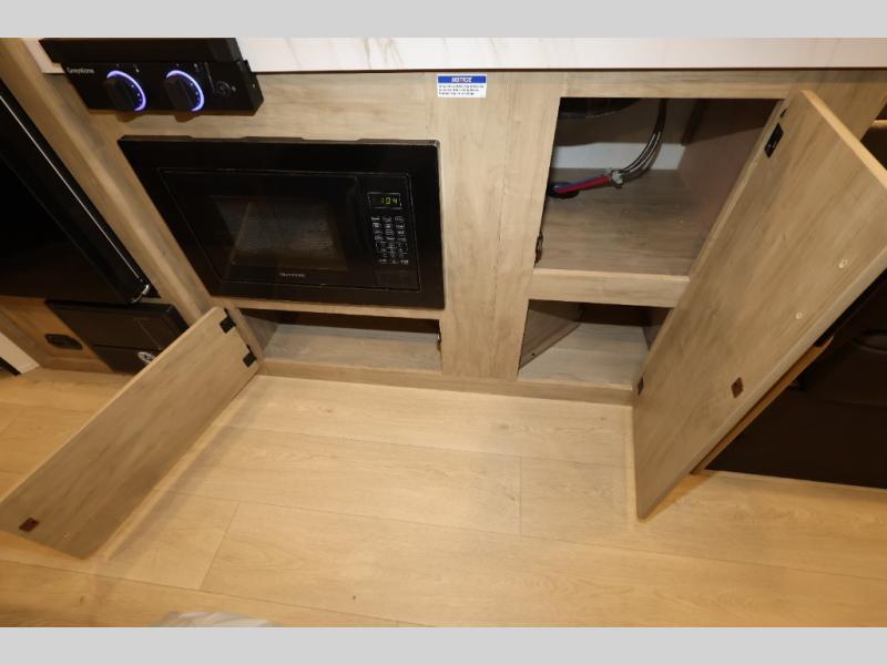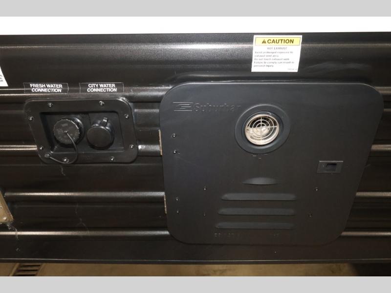 The double-size bunks in this model will allow you to camp with more friends and family! With the additional queen bed up front, plus the sofa and booth dinette, you can sleep eight! A full kitchen lets you make meals each day, and the full bath includes a tub/shower so you can clean up after hiking. This unit also includes USB ports to keep your electronics charged, and outside storage for your camp gear!