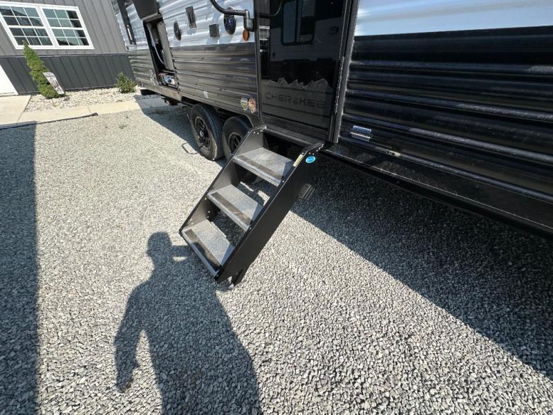 Whether it's a journey that will take you to new locations or a tried-and-true getaway to that favorite and memorable destination, the Forest River Cherokee Grey Wolf travel trailers and toy haulers are going to make the trip worth it every single time! You can travel in confidence with the premium wheel package, seamless roofing membrane with heat reflectivity, Power Gear frame technology with space-saver rail design, and Cherokee back-up camera system. The Cherokee Grey Wolf's interior is highly attractive with its stainless steel kitchen suite package and premium bedding ensemble and comforter. You will also find a black waste tank flush-out kit, an outside shower with hot and cold water, an armored underbelly tank enclosure, and an RV grill quick connect.