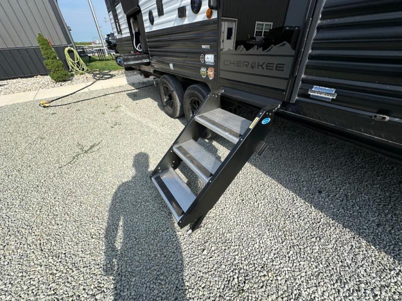 Whether it's a journey that will take you to new locations or a tried-and-true getaway to that favorite and memorable destination, the Forest River Cherokee Grey Wolf travel trailers and toy haulers are going to make the trip worth it every single time! You can travel in confidence with the premium wheel package, seamless roofing membrane with heat reflectivity, Power Gear frame technology with space-saver rail design, and Cherokee back-up camera system. The Cherokee Grey Wolf's interior is highly attractive with its stainless steel kitchen suite package and premium bedding ensemble and comforter. You will also find a black waste tank flush-out kit, an outside shower with hot and cold water, an armored underbelly tank enclosure, and an RV grill quick connect.