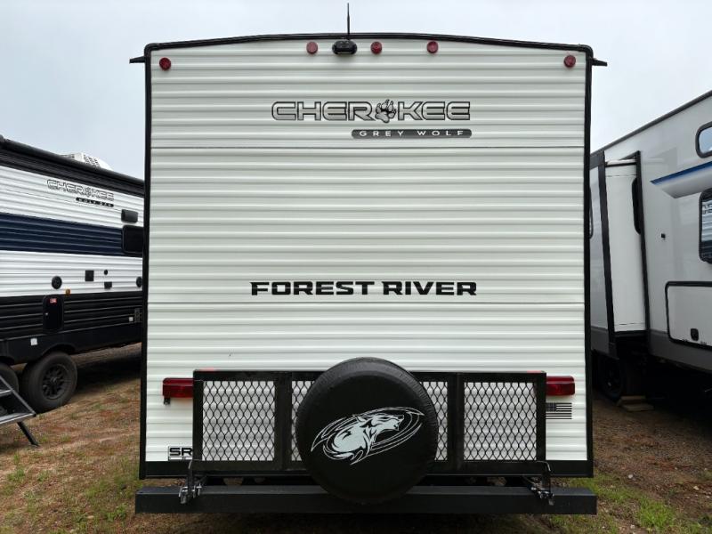 Whether it's a journey that will take you to new locations or a tried-and-true getaway to that favorite and memorable destination, the Forest River Cherokee Grey Wolf travel trailers and toy haulers are going to make the trip worth it every single time! You can travel in confidence with the premium wheel package, seamless roofing membrane with heat reflectivity, Power Gear frame technology with space-saver rail design, and Cherokee back-up camera system. The Cherokee Grey Wolf's interior is highly attractive with its stainless steel kitchen suite package and premium bedding ensemble and comforter. You will also find a black waste tank flush-out kit, an outside shower with hot and cold water, an armored underbelly tank enclosure, and an RV grill quick connect.