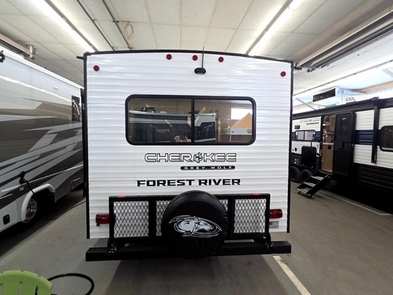 Whether it's a journey that will take you to new locations or a tried-and-true getaway to that favorite and memorable destination, the Forest River Cherokee Grey Wolf travel trailers and toy haulers are going to make the trip worth it every single time! You can travel in confidence with the premium wheel package, seamless roofing membrane with heat reflectivity, Power Gear frame technology with space-saver rail design, and Cherokee back-up camera system. The Cherokee Grey Wolf's interior is highly attractive with its stainless steel kitchen suite package and premium bedding ensemble and comforter. You will also find a black waste tank flush-out kit, an outside shower with hot and cold water, an armored underbelly tank enclosure, and an RV grill quick connect.
