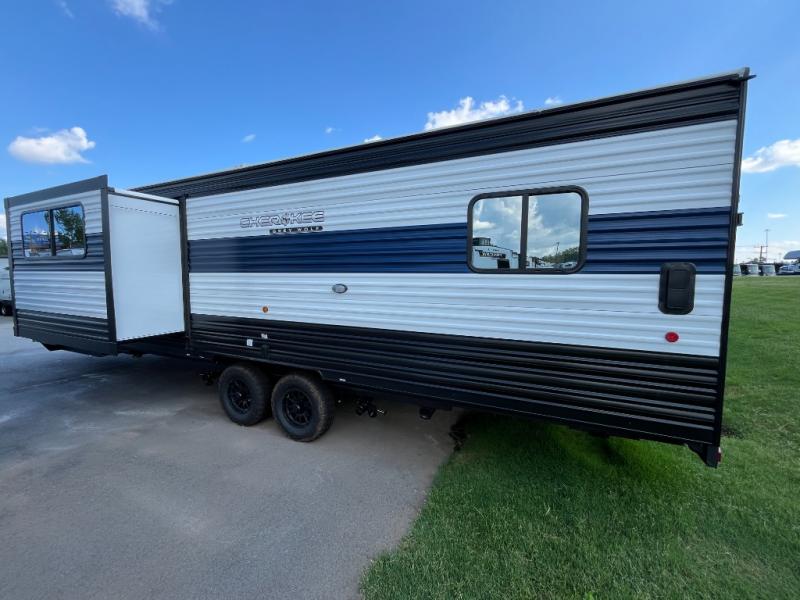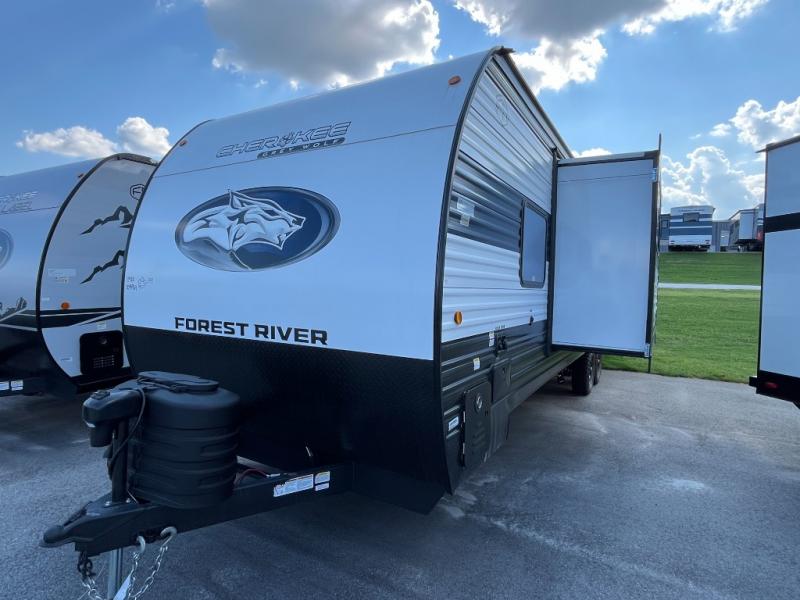 Whether it's a journey that will take you to new locations or a tried-and-true getaway to that favorite and memorable destination, the Forest River Cherokee Grey Wolf travel trailers and toy haulers are going to make the trip worth it every single time! You can travel in confidence with the premium wheel package, seamless roofing membrane with heat reflectivity, Power Gear frame technology with space-saver rail design, and Cherokee back-up camera system. The Cherokee Grey Wolf's interior is highly attractive with its stainless steel kitchen suite package and premium bedding ensemble and comforter. You will also find a black waste tank flush-out kit, an outside shower with hot and cold water, an armored underbelly tank enclosure, and an RV grill quick connect.
