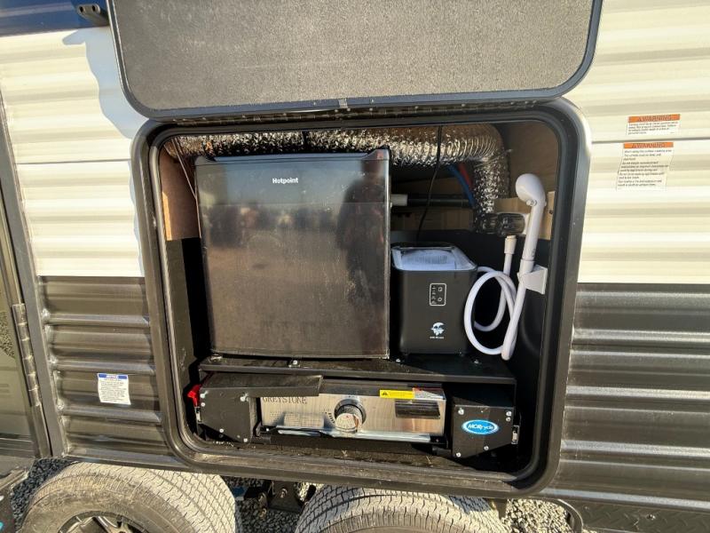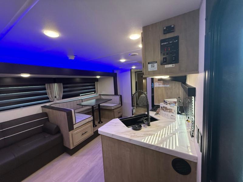 Whether it's a journey that will take you to new locations or a tried-and-true getaway to that favorite and memorable destination, the Forest River Cherokee Grey Wolf travel trailers and toy haulers are going to make the trip worth it every single time! You can travel in confidence with the premium wheel package, seamless roofing membrane with heat reflectivity, Power Gear frame technology with space-saver rail design, and Cherokee back-up camera system. The Cherokee Grey Wolf's interior is highly attractive with its stainless steel kitchen suite package and premium bedding ensemble and comforter. You will also find a black waste tank flush-out kit, an outside shower with hot and cold water, an armored underbelly tank enclosure, and an RV grill quick connect.