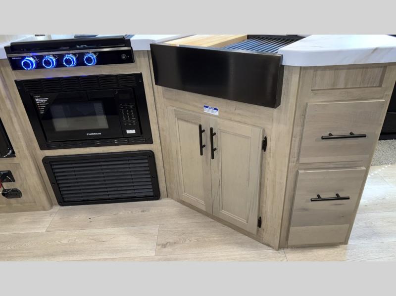 With Unique Bunk Suite & Cargo Door, King Bed, Solar Panel, Back Up Camera, On Demand Water Heater, Outdoor Bar & Grill - Ice Maker, Gas Griddle, Refridge / Freezer & Outdoor Shower, Air Fryer / Convection Microwave and Flip Down Travel Rack W/ Spare Tire