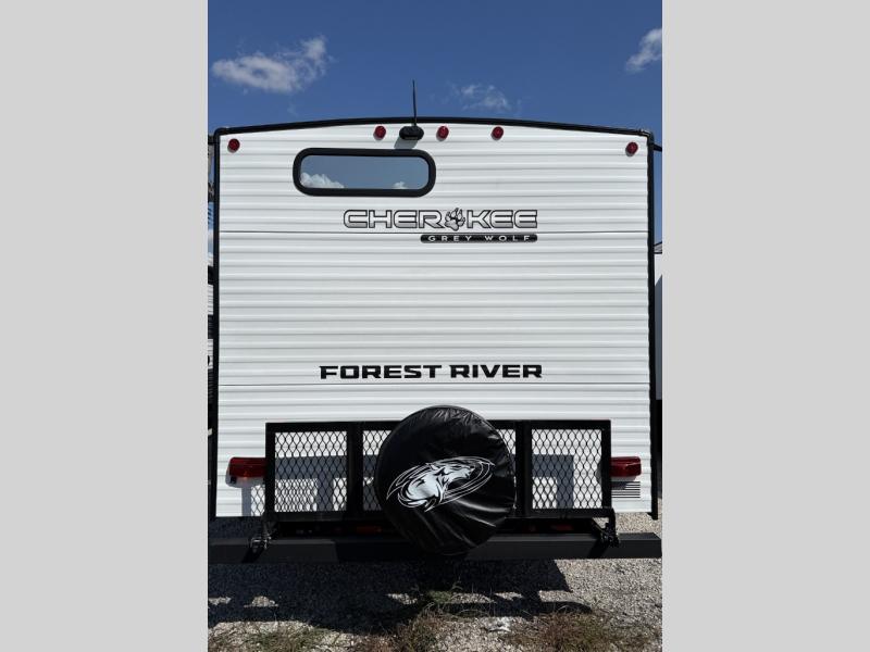 Whether it's a journey that will take you to new locations or a tried-and-true getaway to that favorite and memorable destination, the Forest River Cherokee Grey Wolf travel trailers and toy haulers are going to make the trip worth it every single time! You can travel in confidence with the premium wheel package, seamless roofing membrane with heat reflectivity, Power Gear frame technology with space-saver rail design, and Cherokee back-up camera system. The Cherokee Grey Wolf's interior is highly attractive with its stainless steel kitchen suite package and premium bedding ensemble and comforter. You will also find a black waste tank flush-out kit, an outside shower with hot and cold water, an armored underbelly tank enclosure, and an RV grill quick connect.
