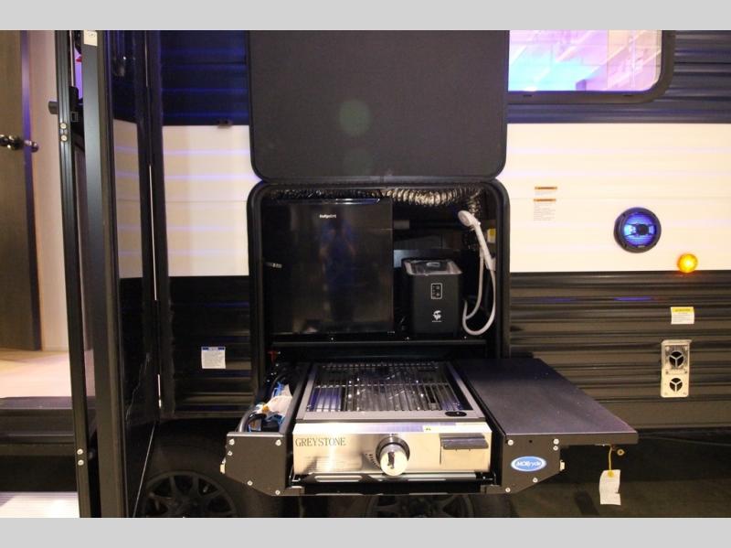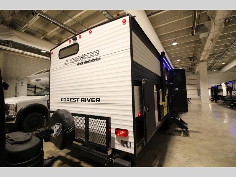 Whether it's a journey that will take you to new locations or a tried-and-true getaway to that favorite and memorable destination, the Forest River Cherokee Grey Wolf travel trailers and toy haulers are going to make the trip worth it every single time! You can travel in confidence with the premium wheel package, seamless roofing membrane with heat reflectivity, Power Gear frame technology with space-saver rail design, and Cherokee back-up camera system. The Cherokee Grey Wolf's interior is highly attractive with its stainless steel kitchen suite package and premium bedding ensemble and comforter. You will also find a black waste tank flush-out kit, an outside shower with hot and cold water, an armored underbelly tank enclosure, and an RV grill quick connect.