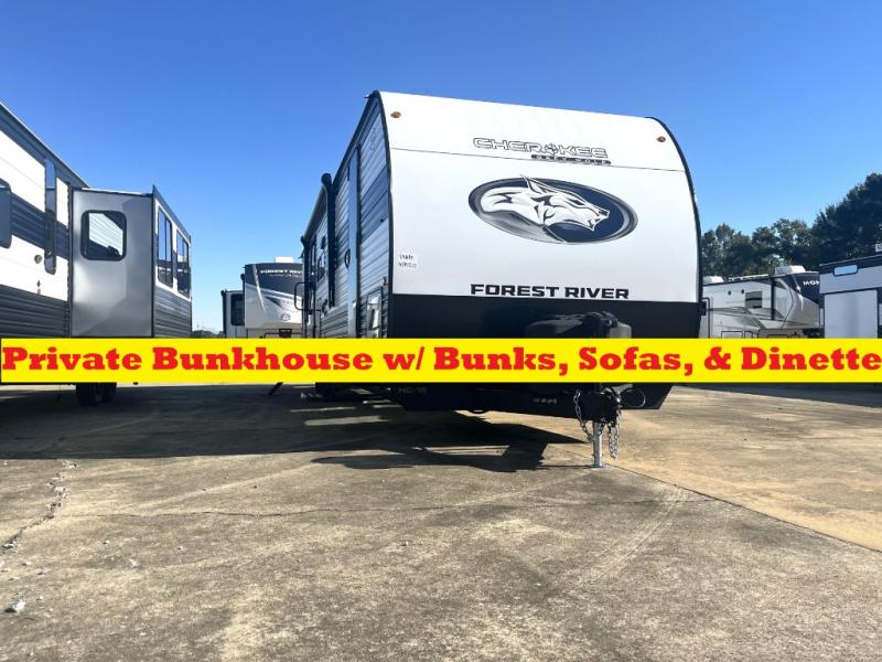 The Cherokee Grey Wolf by Forest River feature distinctive features, at-home comforts, and durable construction materials so you can enjoy your RV for years to come, plus they are outstandingly affordable! You can choose between travel trailers, toy haulers, and even fish houses, depending on the camping style you prefer. You'll find many convenient amenities both inside and outside, along with comfortable seating and sleeping spaces, and plenty of storage for your personal belongings and camp gear!