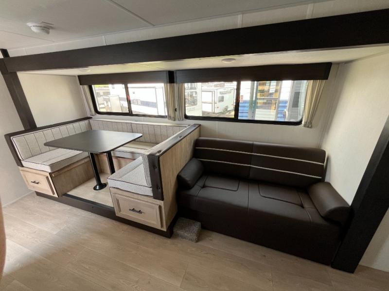 You will have such a great time making memories in this Cherokee Grey Wolf travel trailer! This amazing trailer not only has a master suite up front, but it also has another private bedroom in the back which means that both you and the rest of your fellow campers will sleep peacefully and privately. There is also a U-shaped dinette and sofa on the large slide in the main living area so that if you have anyone else traveling with you, they can also have a place to sleep. A full kitchen, complete with an air fryer will help you whip up a hearty meal to replenish your tired bodies, and a pantry will hold onto your snacks and sweets for later.