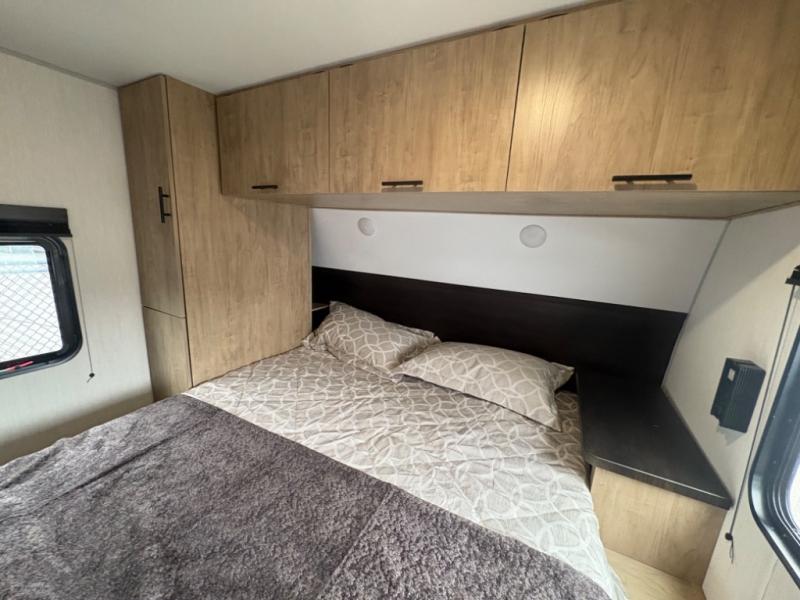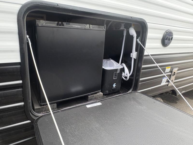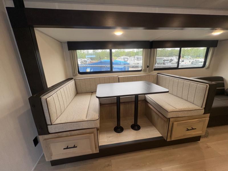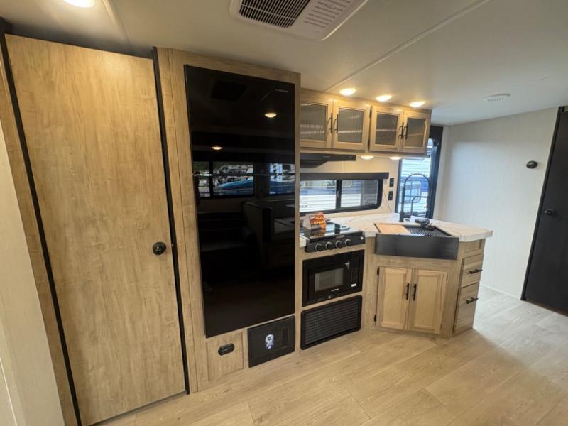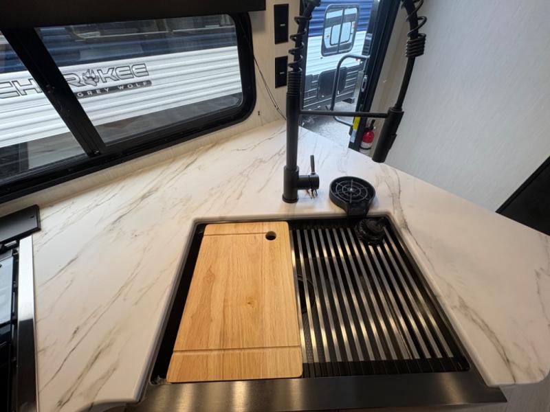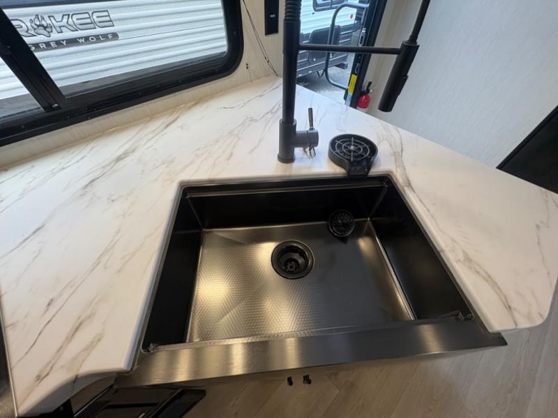 You will have such a great time making memories in this Cherokee Grey Wolf travel trailer! This amazing trailer not only has a master suite up front, but it also has another private bedroom in the back which means that both you and the rest of your fellow campers will sleep peacefully and privately. There is also a U-shaped dinette and sofa on the large slide in the main living area so that if you have anyone else traveling with you, they can also have a place to sleep. A full kitchen, complete with an air fryer will help you whip up a hearty meal to replenish your tired bodies, and a pantry will hold onto your snacks and sweets for later.