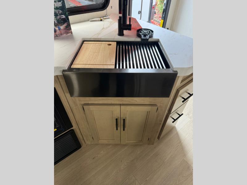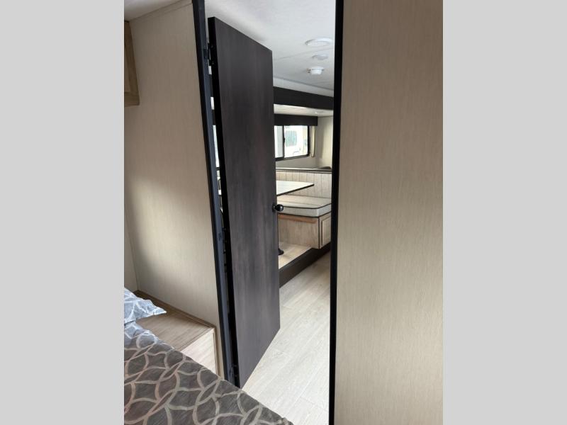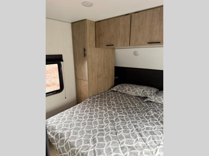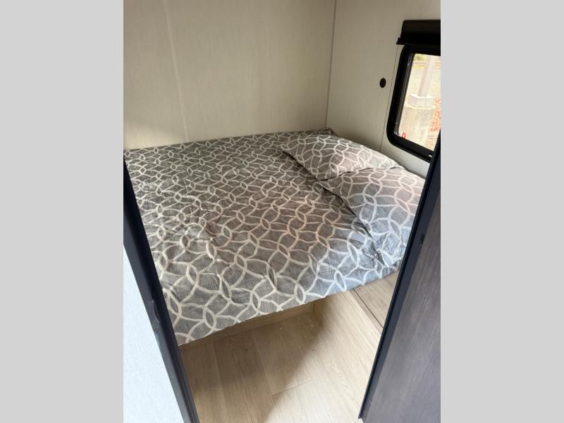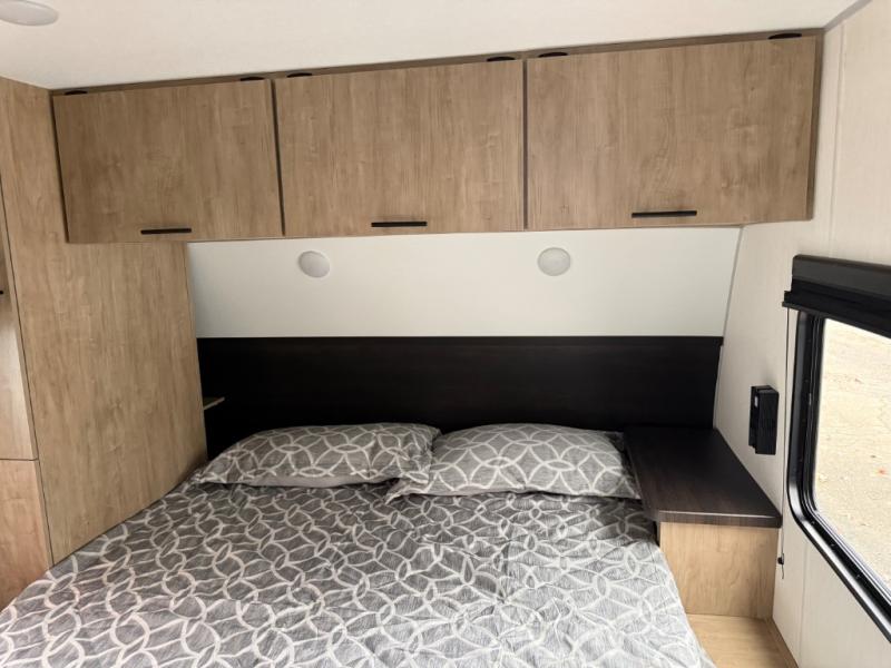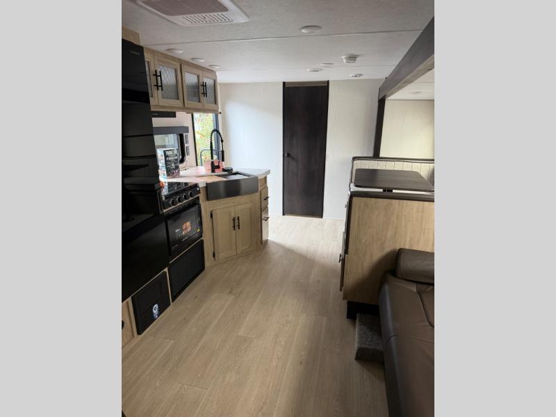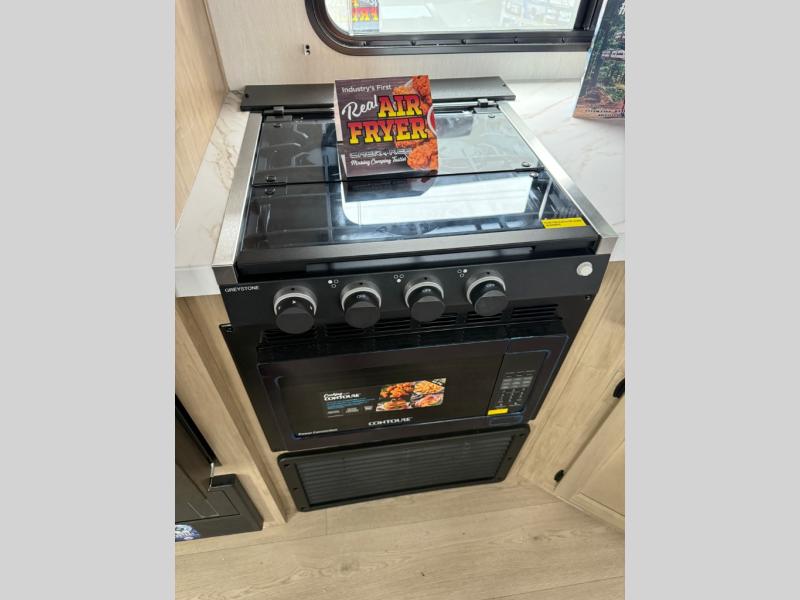 You will have such a great time making memories in this Cherokee Grey Wolf travel trailer! This amazing trailer not only has a master suite up front, but it also has another private bedroom in the back which means that both you and the rest of your fellow campers will sleep peacefully and privately. There is also a U-shaped dinette and sofa on the large slide in the main living area so that if you have anyone else traveling with you, they can also have a place to sleep. A full kitchen, complete with an air fryer will help you whip up a hearty meal to replenish your tired bodies, and a pantry will hold onto your snacks and sweets for later.