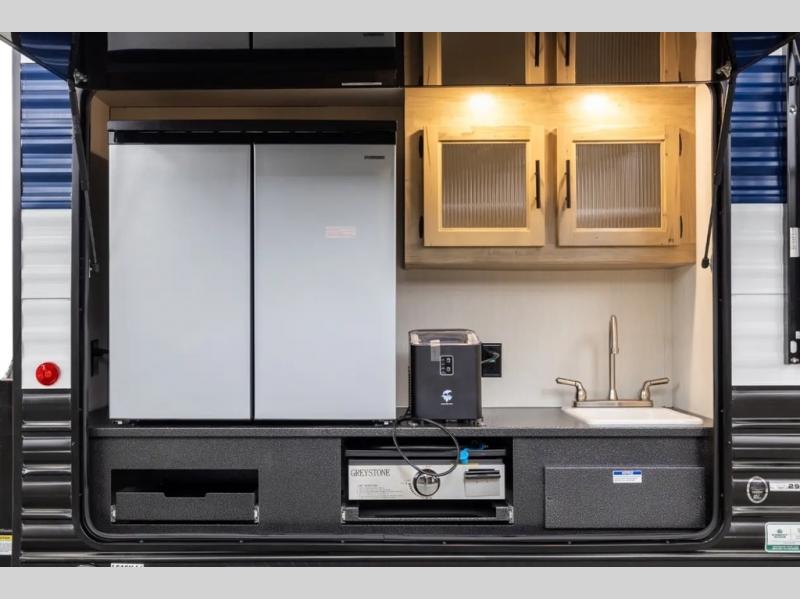 Whether it's a journey that will take you to new locations or a tried-and-true getaway to that favorite and memorable destination, the Forest River Cherokee Grey Wolf travel trailers and toy haulers are going to make the trip worth it every single time! You can travel in confidence with the premium wheel package, seamless roofing membrane with heat reflectivity, Power Gear frame technology with space-saver rail design, and Cherokee back-up camera system. The Cherokee Grey Wolf's interior is highly attractive with its stainless steel kitchen suite package and premium bedding ensemble and comforter. You will also find a black waste tank flush-out kit, an outside shower with hot and cold water, an armored underbelly tank enclosure, and an RV grill quick connect.
