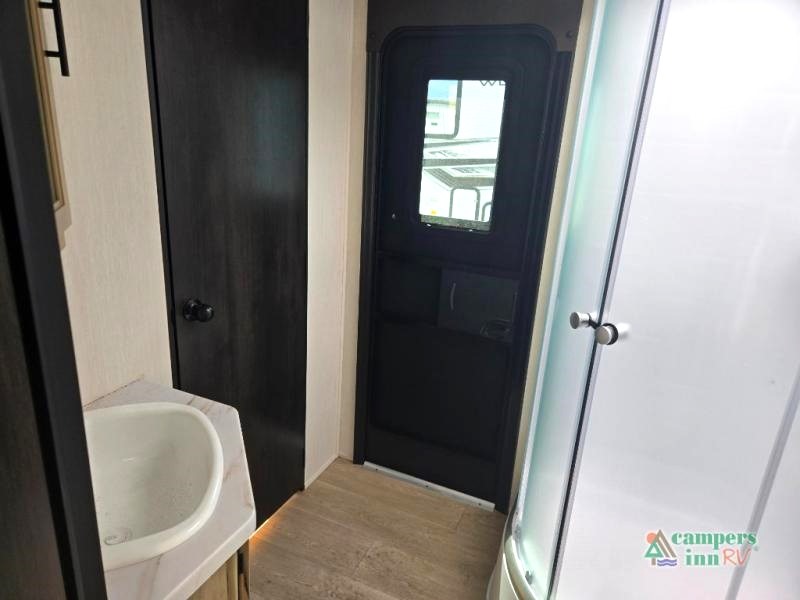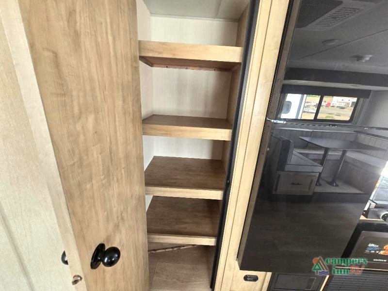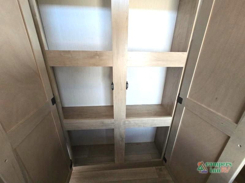 Campfire Package: Features like a tankless water heater, Bluetooth radio, and solid bedroom doors add comfort and convenience.