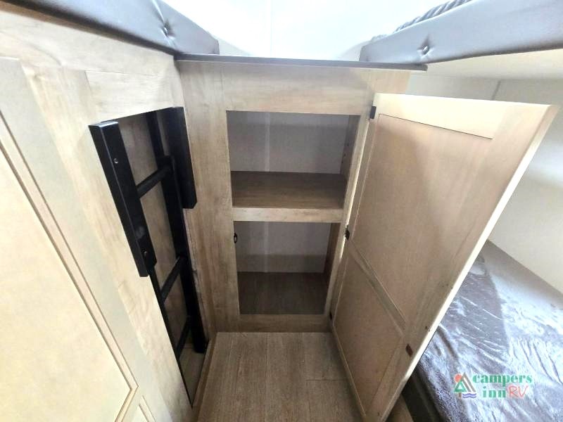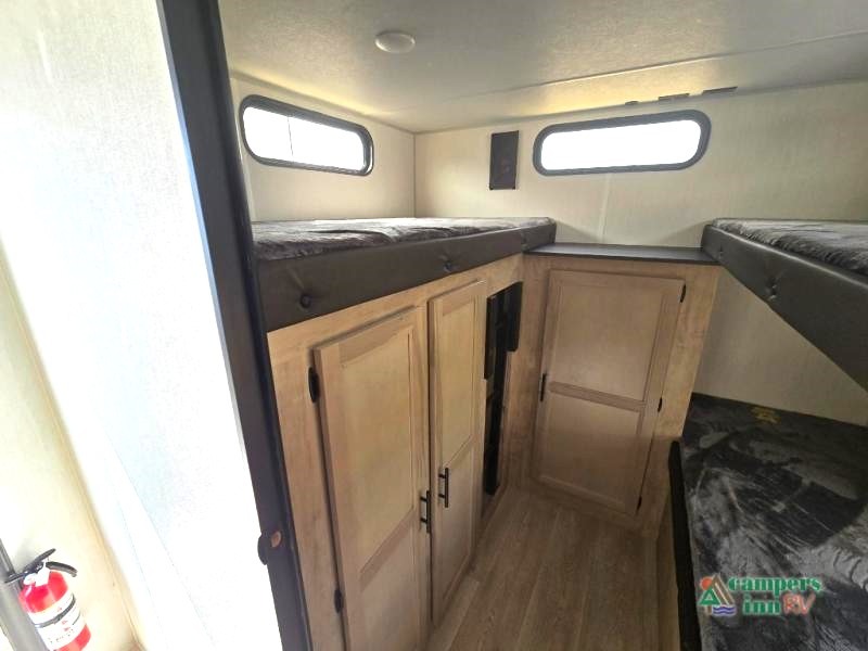 Private Bunkhouse: The rear bunkhouse provides ample sleeping space for kids, featuring three bunk beds and additional storage, ensuring everyone has their own space.