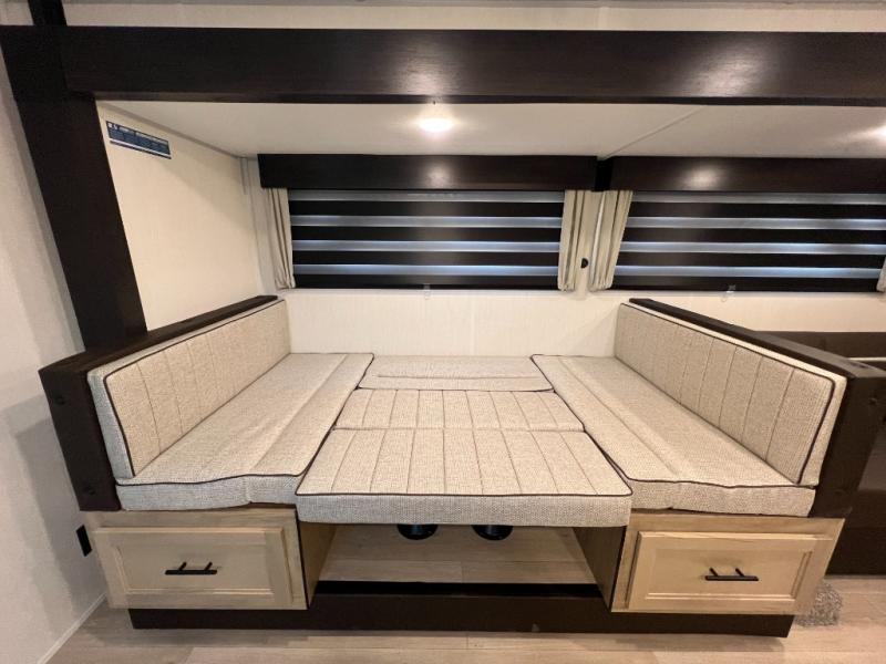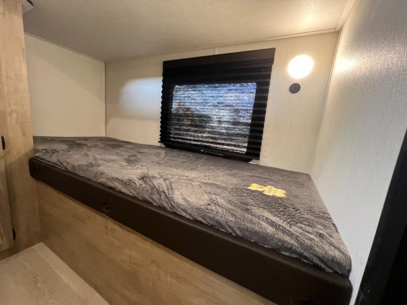Your larger family will love spending weekends away with this Cherokee Grey Wolf travel trailer as their home away from home. This model offers lots of sleeping space with three bunk beds in the rear private bunkhouse. In the front, there is a master suite with wardrobes and nightstands on either side of the RV king bed, and it even has private access to the dual-entry bath. The two entry doors will make accessing the trailer easy for everyone, and you will appreciate the abundant storage throughout this unit including large overhead cabinets, a spacious pantry, and numerous outside storage compartments for all of your outdoor gear. There's even an outside bar & grill!