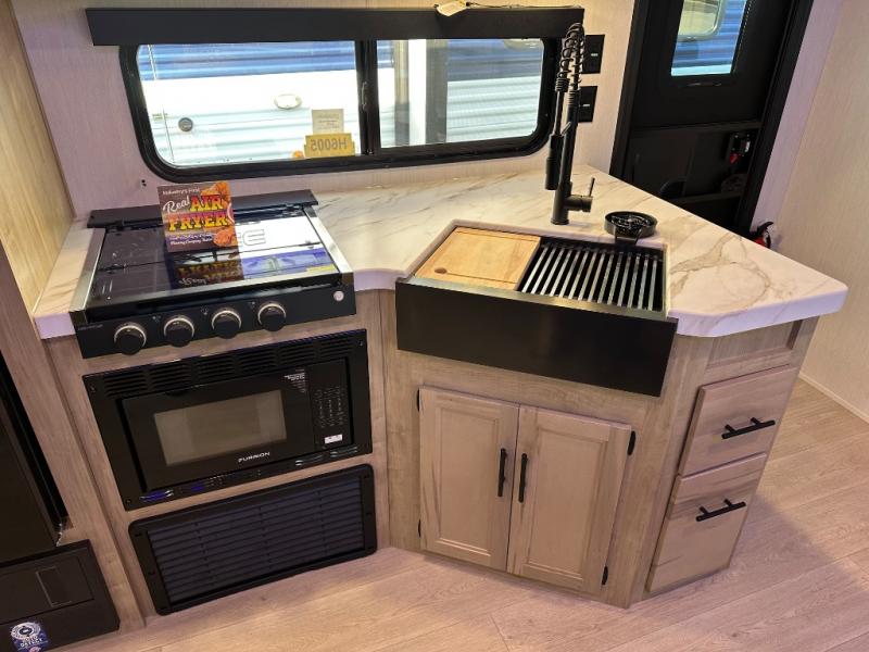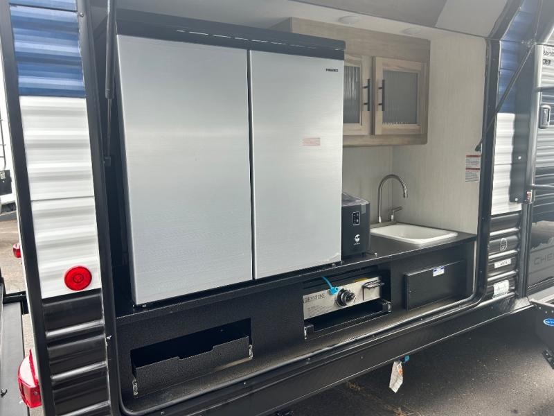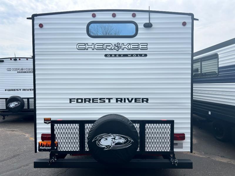 Whether it's a journey that will take you to new locations or a tried-and-true getaway to that favorite and memorable destination, the Forest River Cherokee Grey Wolf travel trailers and toy haulers are going to make the trip worth it every single time! You can travel in confidence with the premium wheel package, seamless roofing membrane with heat reflectivity, Power Gear frame technology with space-saver rail design, and Cherokee back-up camera system. The Cherokee Grey Wolf's interior is highly attractive with its stainless steel kitchen suite package and premium bedding ensemble and comforter. You will also find a black waste tank flush-out kit, an outside shower with hot and cold water, an armored underbelly tank enclosure, and an RV grill quick connect.