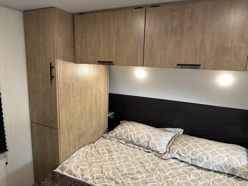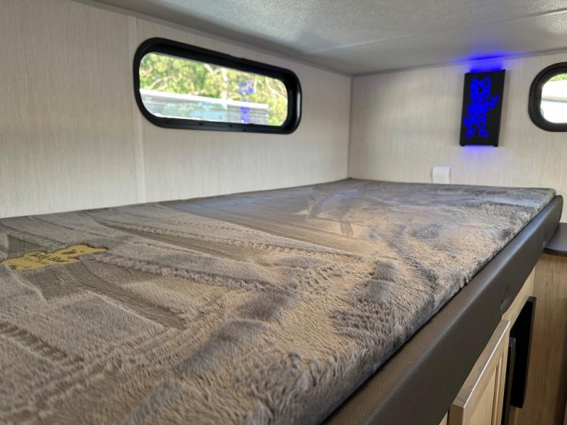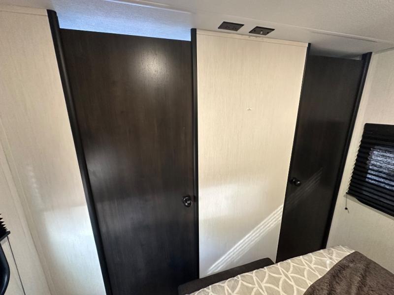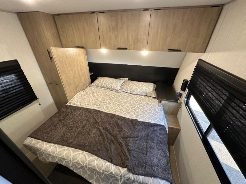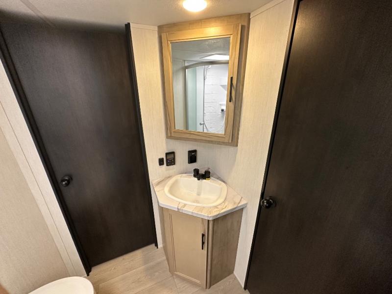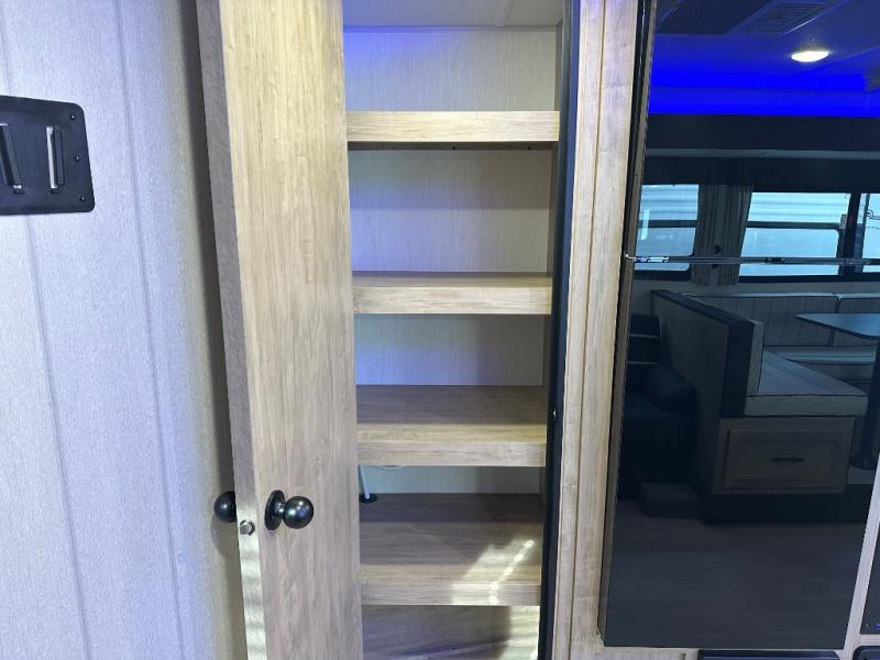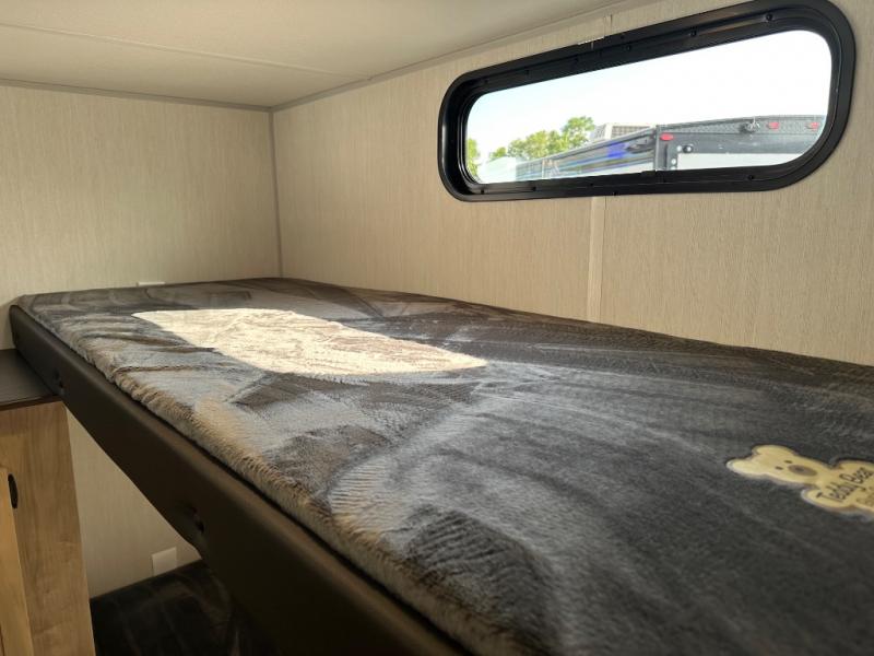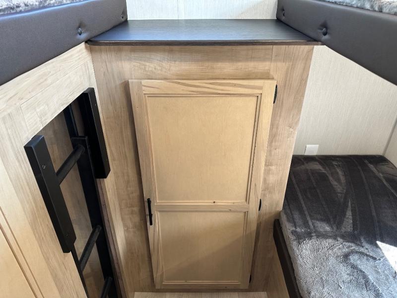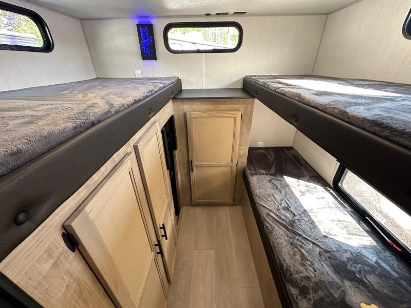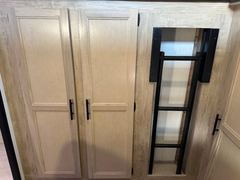 Your larger family will love spending weekends away with this Cherokee Grey Wolf travel trailer as their home away from home. This model offers lots of sleeping space with three bunk beds in the rear private bunkhouse. In the front, there is a master suite with wardrobes and nightstands on either side of the RV king bed, and it even has private access to the dual-entry bath. The two entry doors will make accessing the trailer easy for everyone, and you will appreciate the abundant storage throughout this unit including large overhead cabinets, a spacious pantry, and numerous outside storage compartments for all of your outdoor gear. There's even an outside bar & grill!