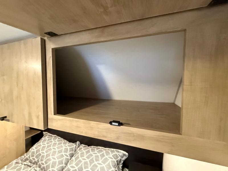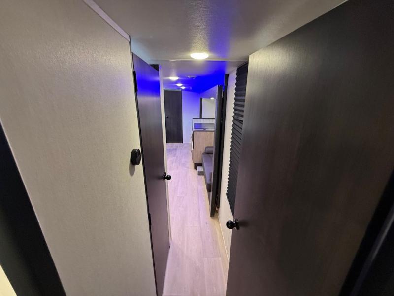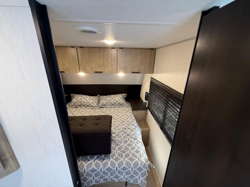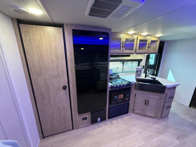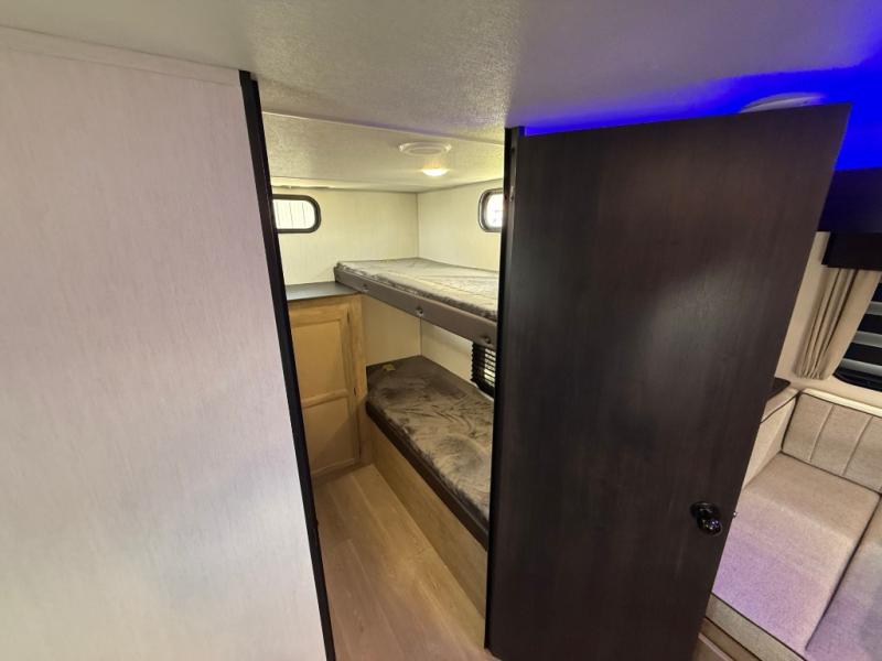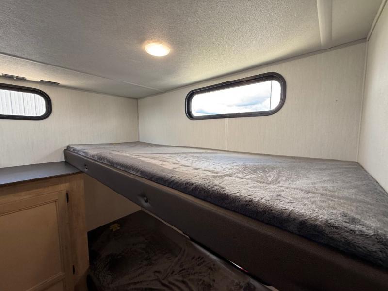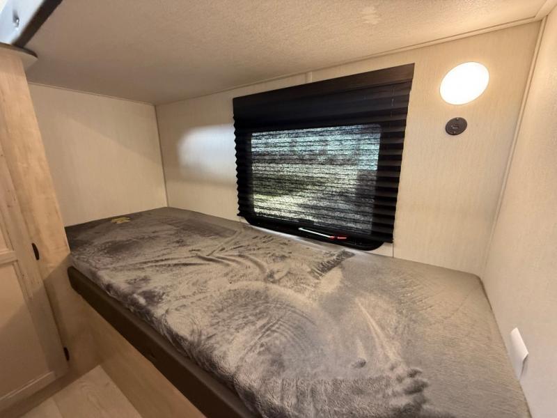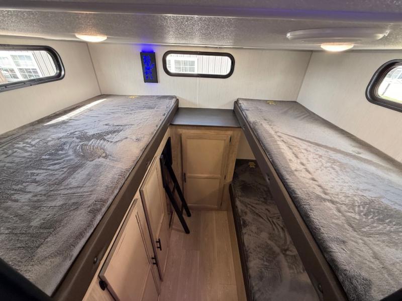 Your larger family will love spending weekends away with this Cherokee Grey Wolf travel trailer as their home away from home. This model offers lots of sleeping space with three bunk beds in the rear private bunkhouse. In the front, there is a master suite with wardrobes and nightstands on either side of the RV king bed, and it even has private access to the dual-entry bath. The two entry doors will make accessing the trailer easy for everyone, and you will appreciate the abundant storage throughout this unit including large overhead cabinets, a spacious pantry, and numerous outside storage compartments for all of your outdoor gear. There's even an outside bar & grill!