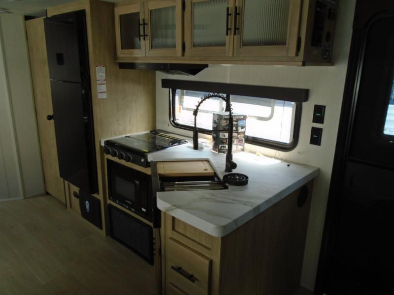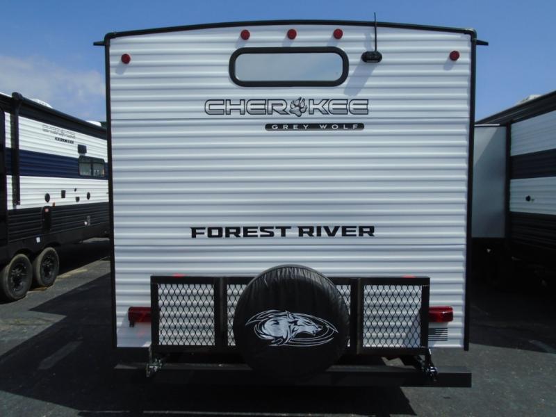 Whether it's a journey that will take you to new locations or a tried-and-true getaway to that favorite and memorable destination, the Forest River Cherokee Grey Wolf travel trailers and toy haulers are going to make the trip worth it every single time! You can travel in confidence with the premium wheel package, seamless roofing membrane with heat reflectivity, Power Gear frame technology with space-saver rail design, and Cherokee back-up camera system. The Cherokee Grey Wolf's interior is highly attractive with its stainless steel kitchen suite package and premium bedding ensemble and comforter. You will also find a black waste tank flush-out kit, an outside shower with hot and cold water, an armored underbelly tank enclosure, and an RV grill quick connect.