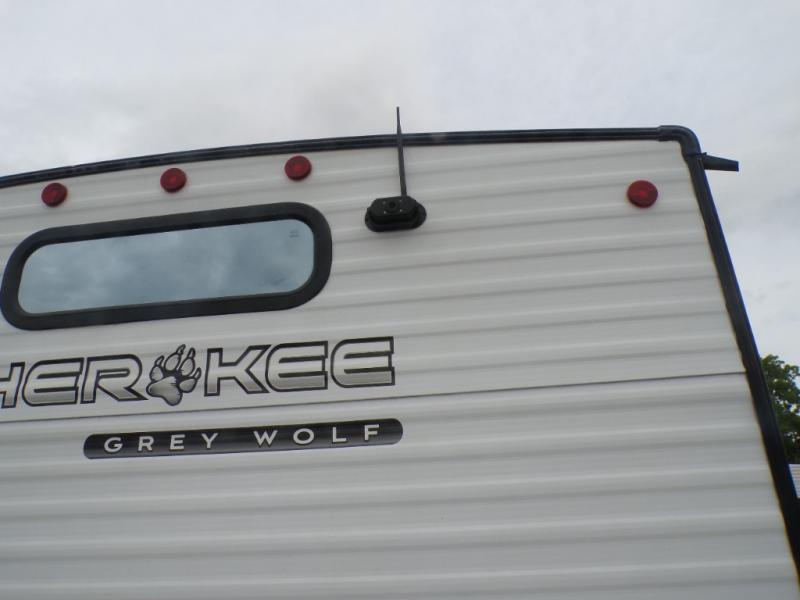 Whether it's a journey that will take you to new locations or a tried-and-true getaway to that favorite and memorable destination, the Forest River Cherokee Grey Wolf travel trailers and toy haulers are going to make the trip worth it every single time! You can travel in confidence with the premium wheel package, seamless roofing membrane with heat reflectivity, Power Gear frame technology with space-saver rail design, and Cherokee back-up camera system. The Cherokee Grey Wolf's interior is highly attractive with its stainless steel kitchen suite package and premium bedding ensemble and comforter. You will also find a black waste tank flush-out kit, an outside shower with hot and cold water, an armored underbelly tank enclosure, and an RV grill quick connect.
