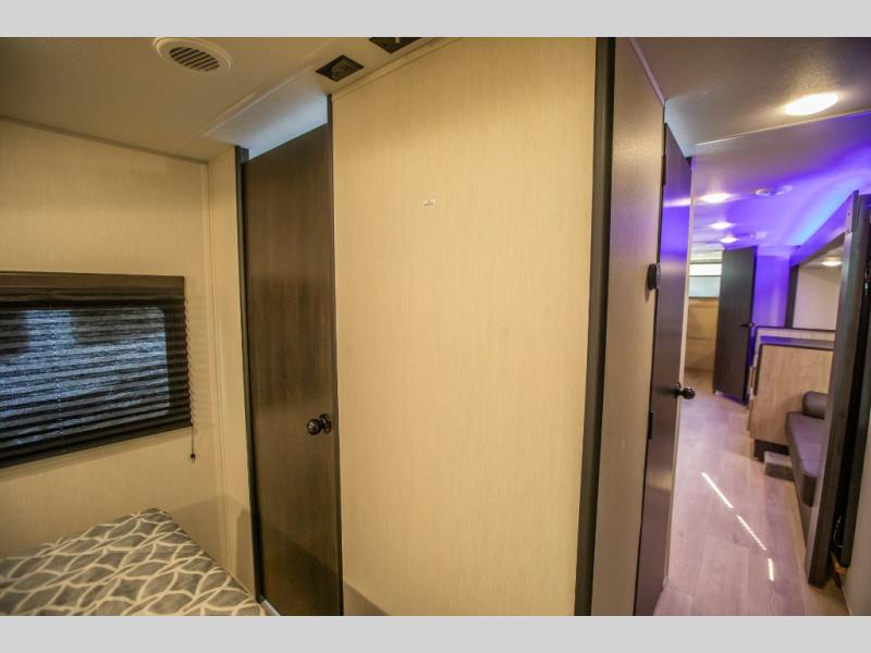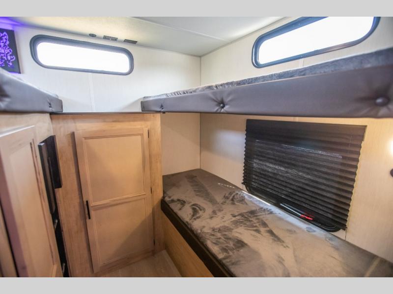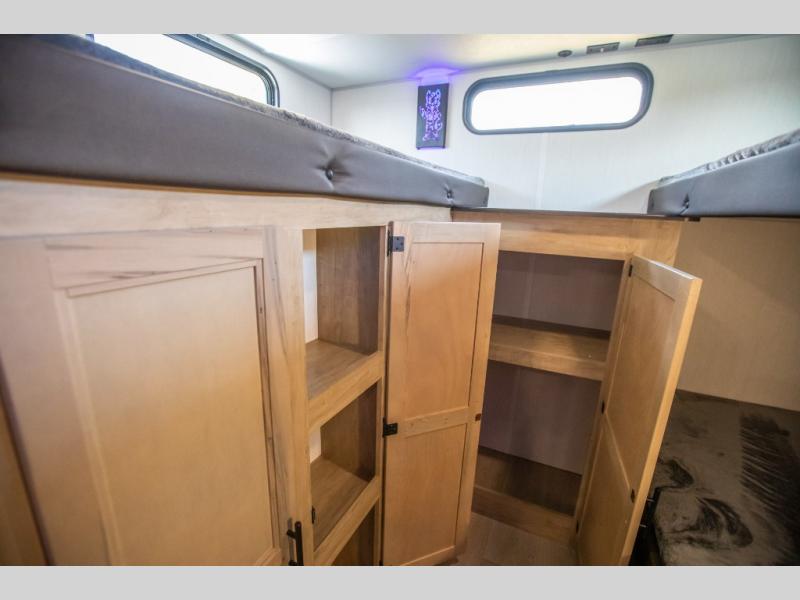 Your larger family will love spending weekends away with this Cherokee Grey Wolf travel trailer as their home away from home. This model offers lots of sleeping space with three bunk beds in the rear private bunkhouse. In the front, there is a master suite with wardrobes and nightstands on either side of the RV king bed, and it even has private access to the dual-entry bath. The two entry doors will make accessing the trailer easy for everyone, and you will appreciate the abundant storage throughout this unit including large overhead cabinets, a spacious pantry, and numerous outside storage compartments for all of your outdoor gear. There's even an outside bar & grill!