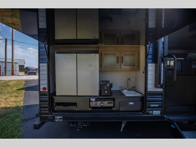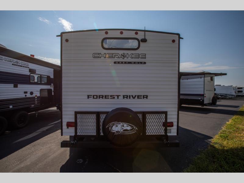 Whether it's a journey that will take you to new locations or a tried-and-true getaway to that favorite and memorable destination, the Forest River Cherokee Grey Wolf travel trailers and toy haulers are going to make the trip worth it every single time! You can travel in confidence with the premium wheel package, seamless roofing membrane with heat reflectivity, Power Gear frame technology with space-saver rail design, and Cherokee back-up camera system. The Cherokee Grey Wolf's interior is highly attractive with its stainless steel kitchen suite package and premium bedding ensemble and comforter. You will also find a black waste tank flush-out kit, an outside shower with hot and cold water, an armored underbelly tank enclosure, and an RV grill quick connect.